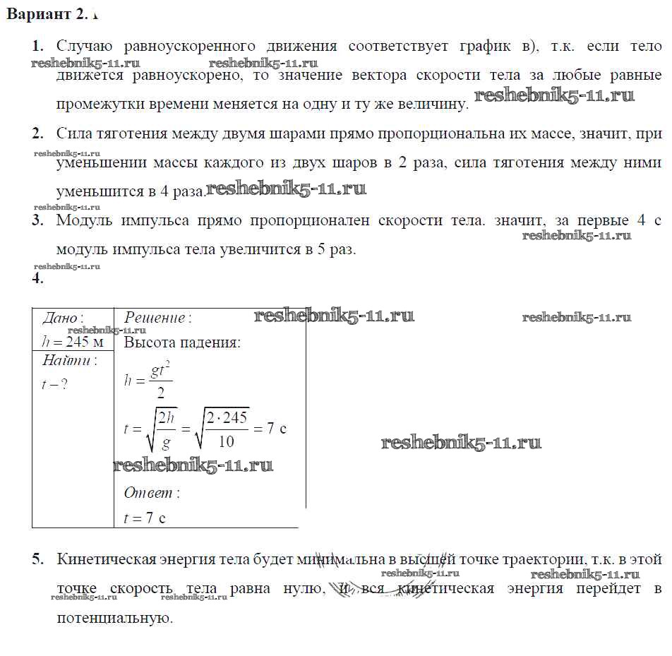 Готовая домашняя работа с ответами по Физике за 9 класс Марон Самостоятельные и контрольные работы УМК Дрофа 2018 ФГОС - КР-1. Варианты 2