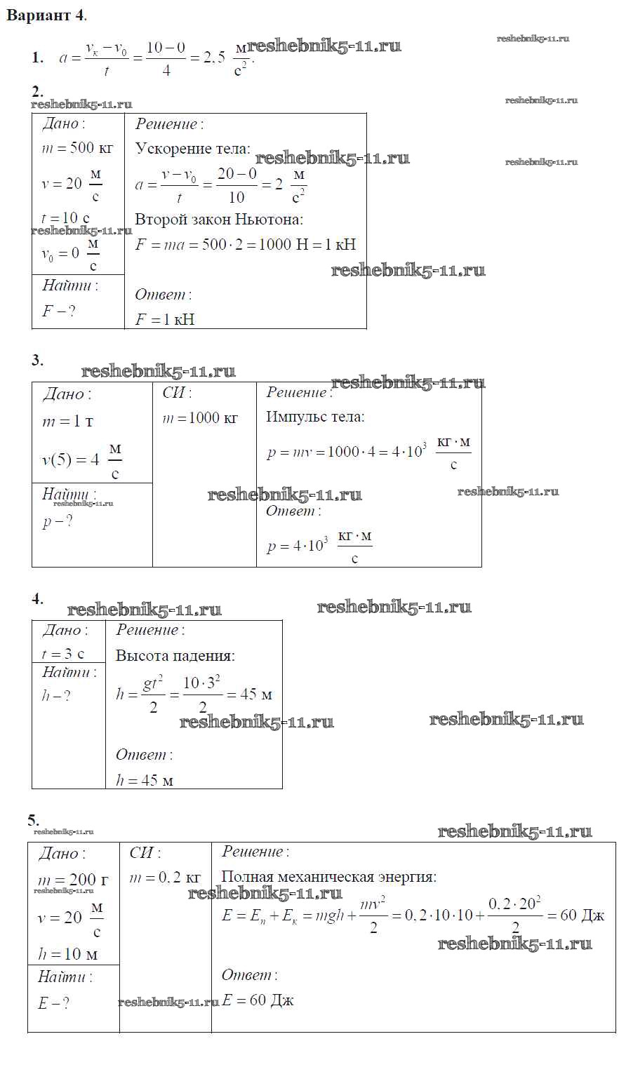 Готовая домашняя работа с ответами по Физике за 9 класс Марон Самостоятельные и контрольные работы УМК Дрофа 2018 ФГОС - КР-1. Варианты 4