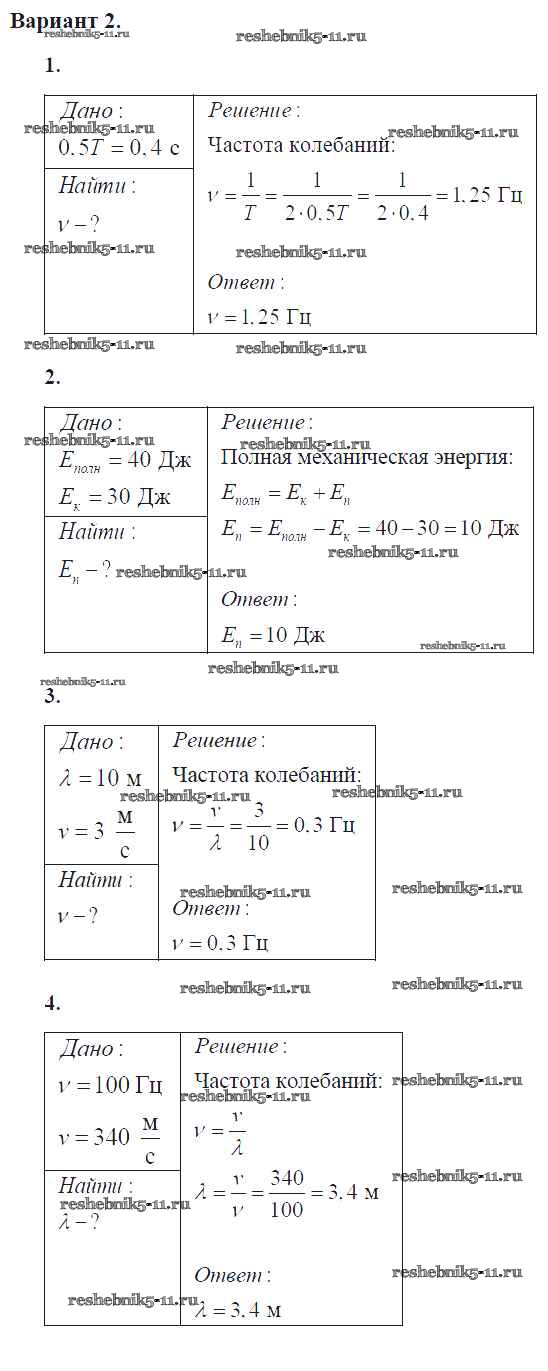 Готовая домашняя работа с ответами по Физике за 9 класс Марон Самостоятельные и контрольные работы УМК Дрофа 2018 ФГОС - КР-2. Варианты 2