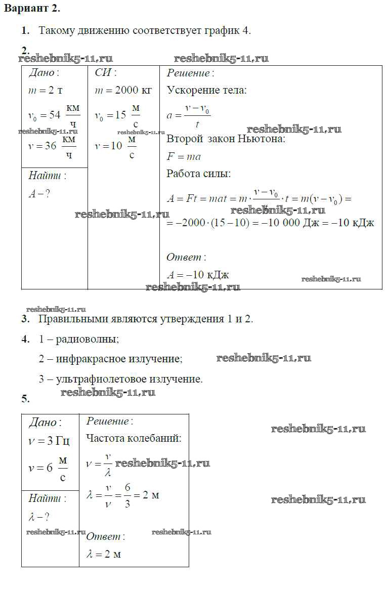 Готовая домашняя работа с ответами по Физике за 9 класс Марон Самостоятельные и контрольные работы УМК Дрофа 2018 ФГОС - КР-6. Варианты 2