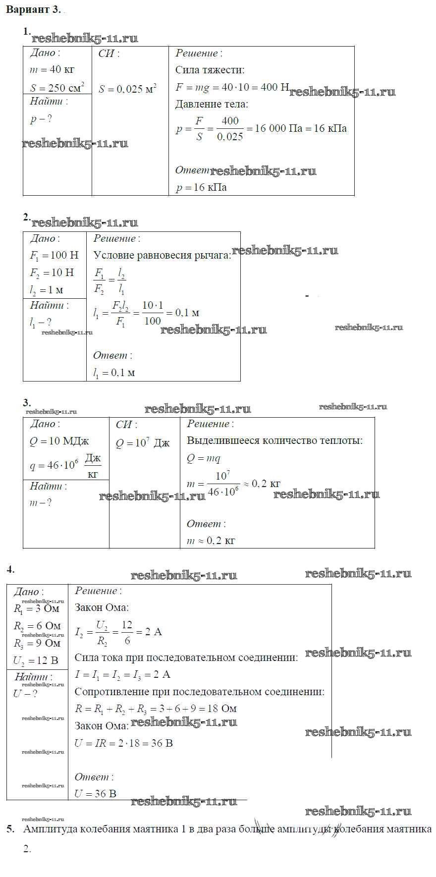 Готовая домашняя работа с ответами по Физике за 9 класс Марон Самостоятельные и контрольные работы УМК Дрофа 2018 ФГОС - КР-7. Варианты 3