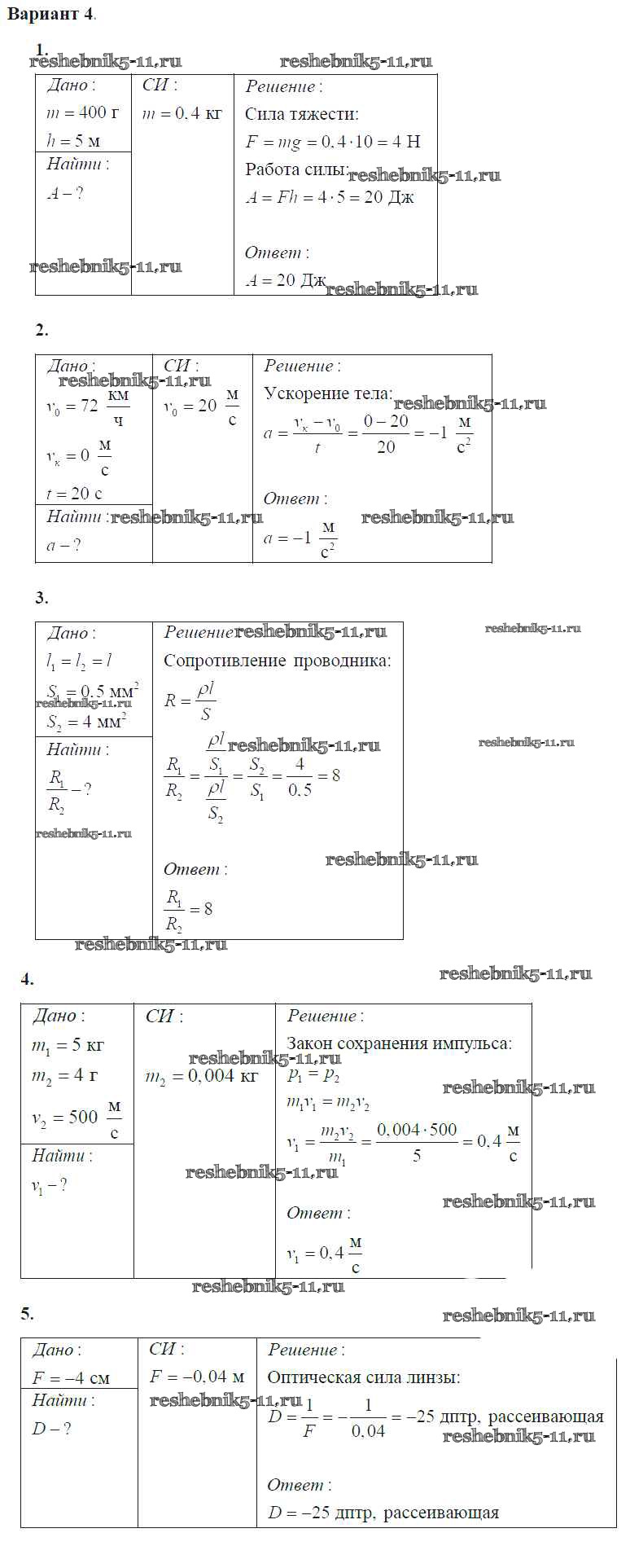 Готовая домашняя работа с ответами по Физике за 9 класс Марон Самостоятельные и контрольные работы УМК Дрофа 2018 ФГОС - КР-7. Варианты 4