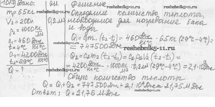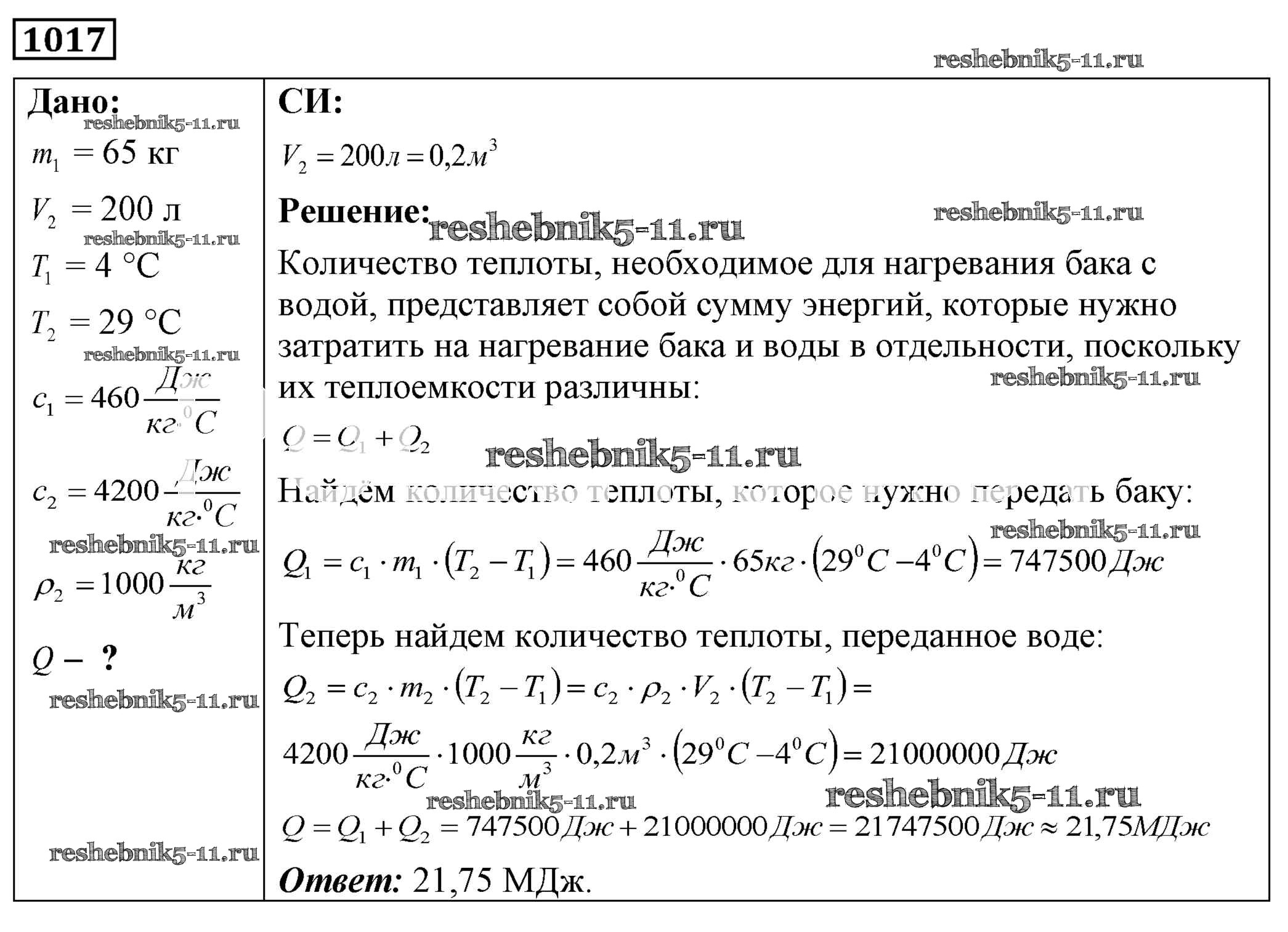 Готовая домашняя работа с ответами по Физике за 7, 8, 9 класс Лукашик, Иванова Сборник задач Просвещение 2011 ФГОС - Задания 1017