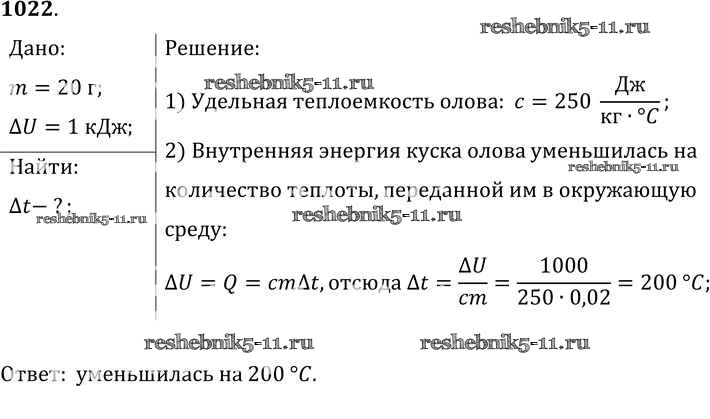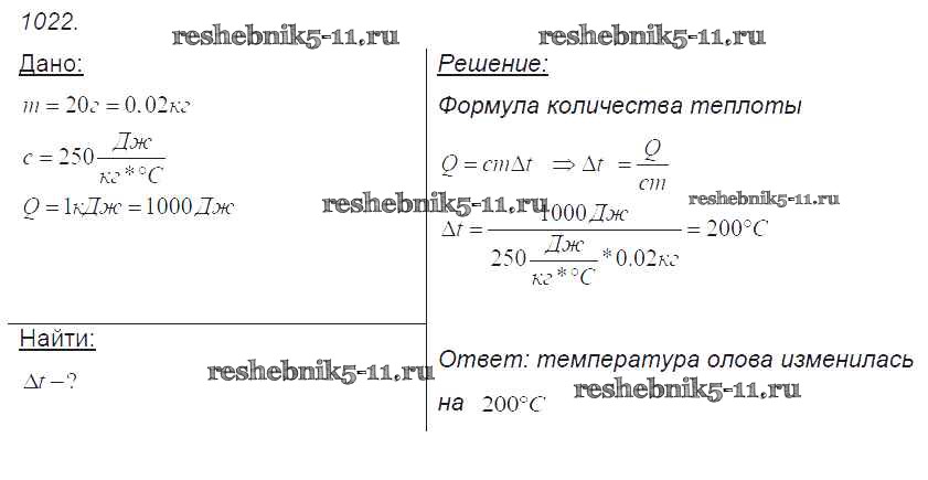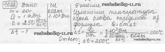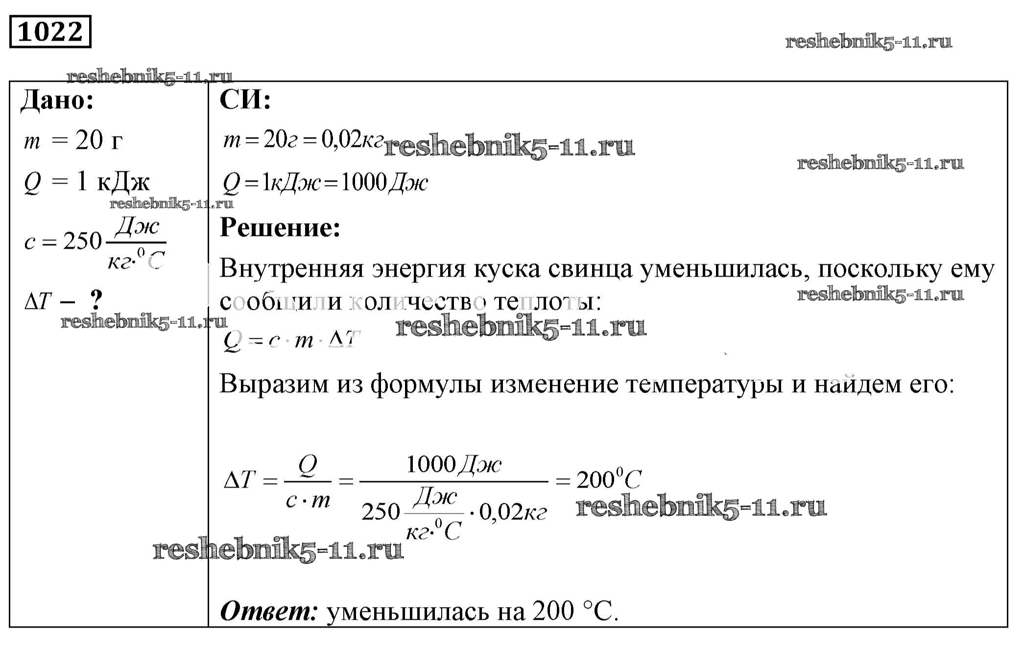 Готовая домашняя работа с ответами по Физике за 7, 8, 9 класс Лукашик, Иванова Сборник задач Просвещение 2011 ФГОС - Задания 1022