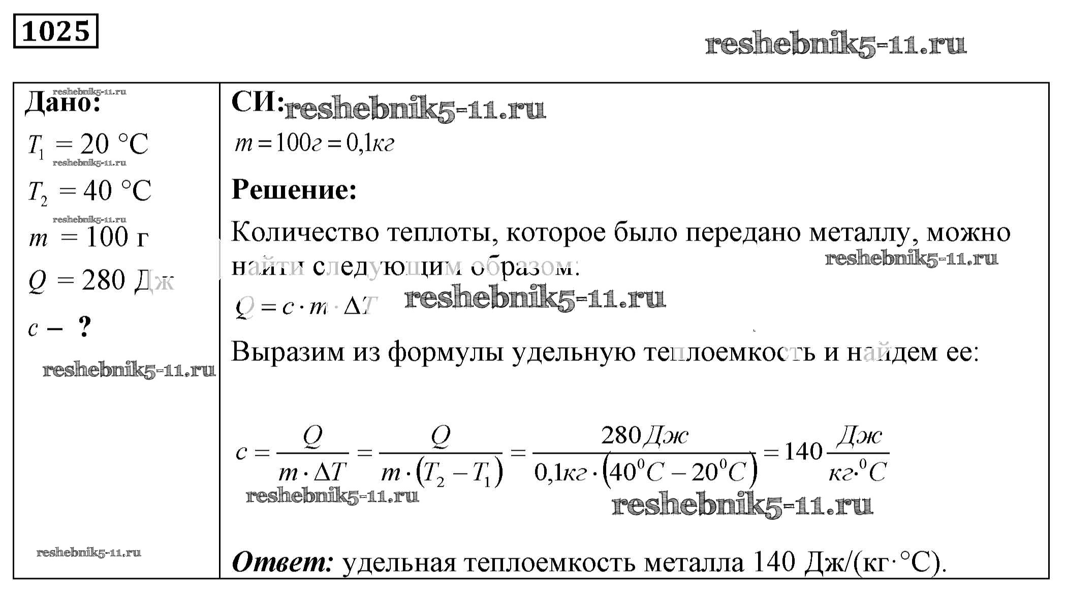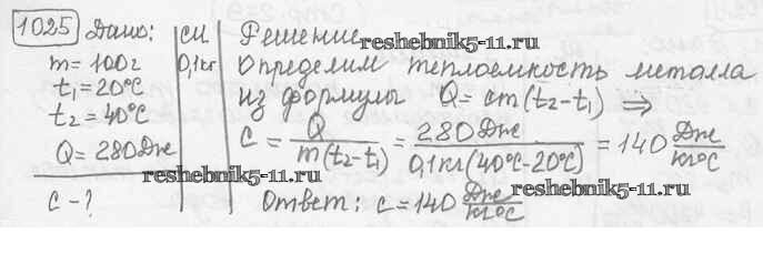 Готовая домашняя работа с ответами по Физике за 7, 8, 9 класс Лукашик, Иванова Сборник задач Просвещение 2011 ФГОС - Задания 1025
