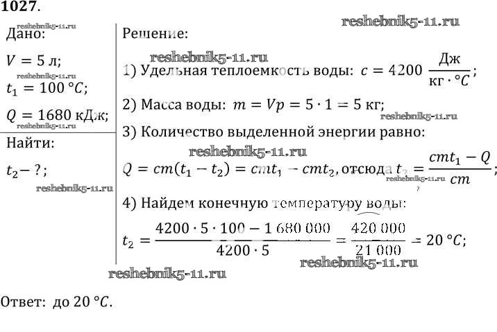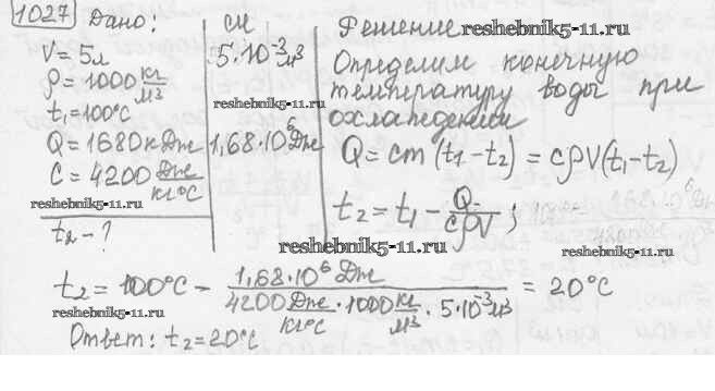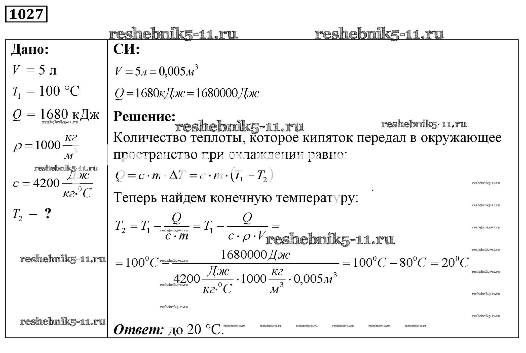 Готовая домашняя работа с ответами по Физике за 7, 8, 9 класс Лукашик, Иванова Сборник задач Просвещение 2011 ФГОС - Задания 1027