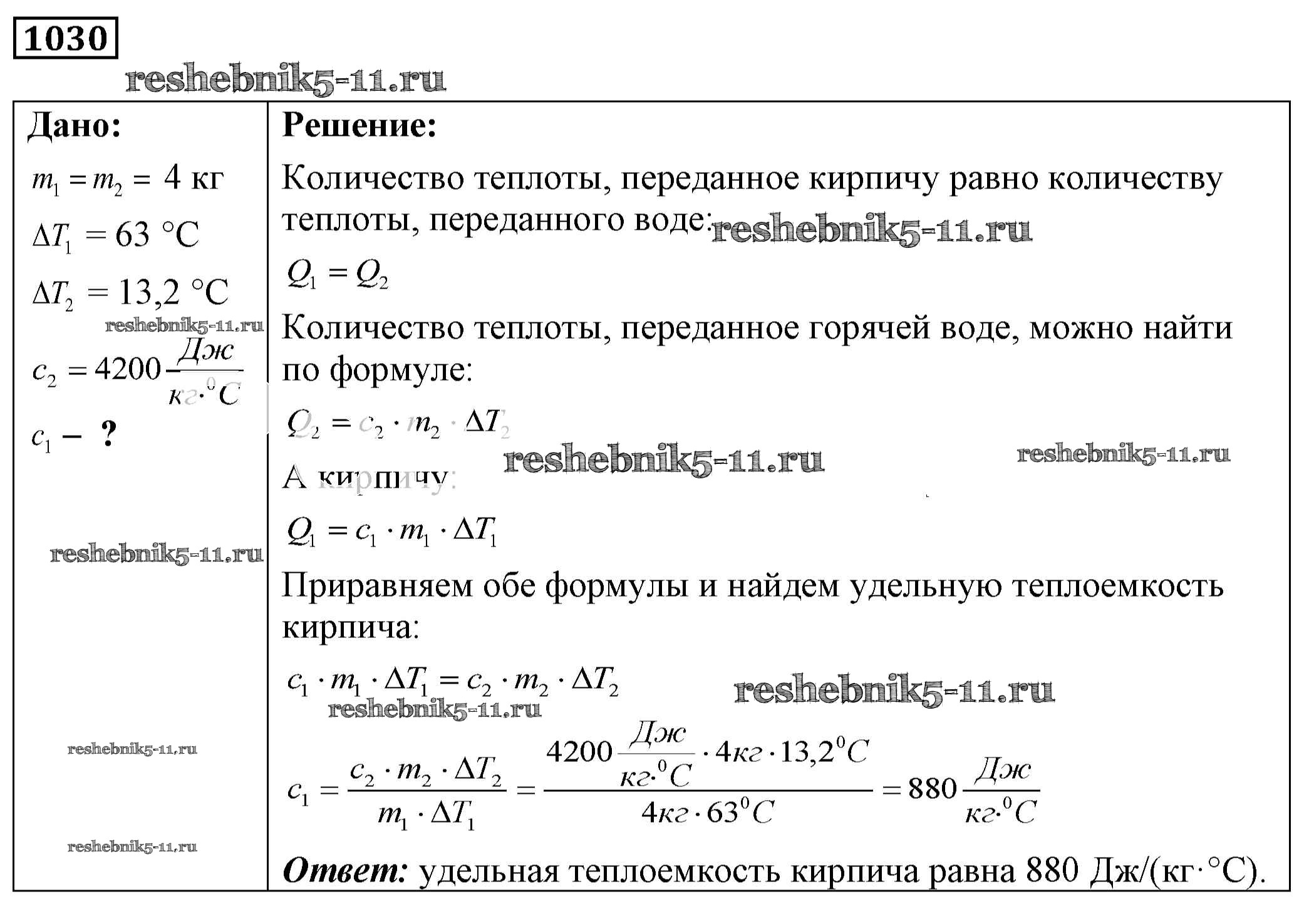 Готовая домашняя работа с ответами по Физике за 7, 8, 9 класс Лукашик, Иванова Сборник задач Просвещение 2011 ФГОС - Задания 1030