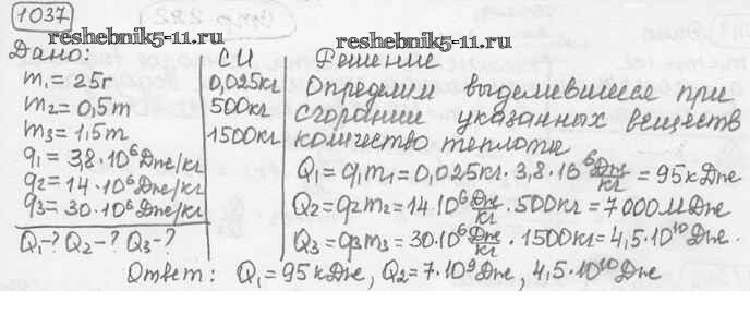 Готовая домашняя работа с ответами по Физике за 7, 8, 9 класс Лукашик, Иванова Сборник задач Просвещение 2011 ФГОС - Задания 1037