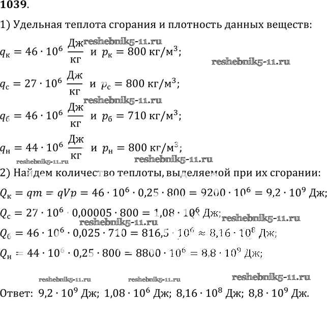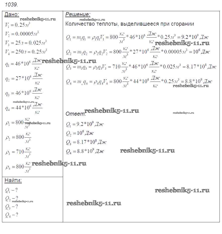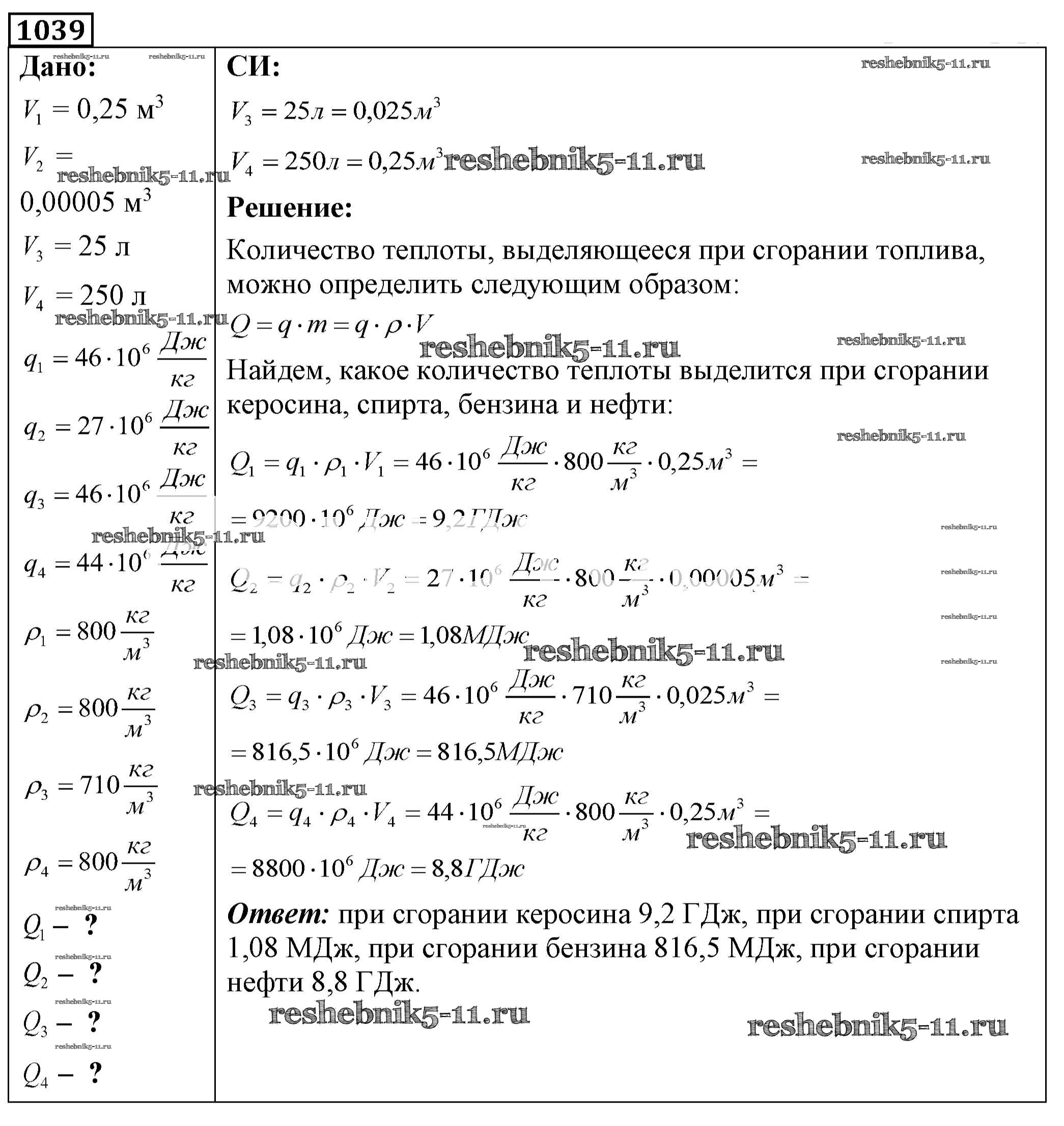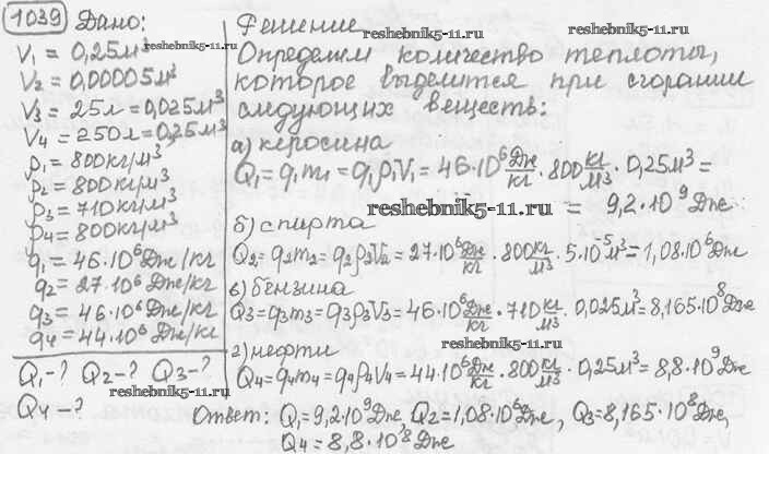 Готовая домашняя работа с ответами по Физике за 7, 8, 9 класс Лукашик, Иванова Сборник задач Просвещение 2011 ФГОС - Задания 1039