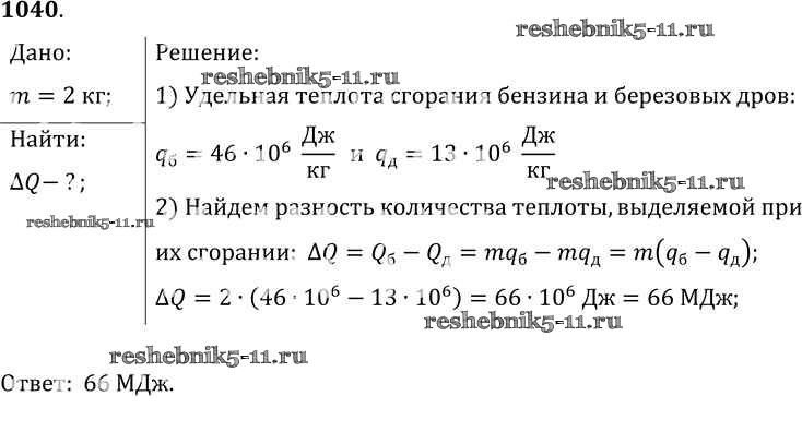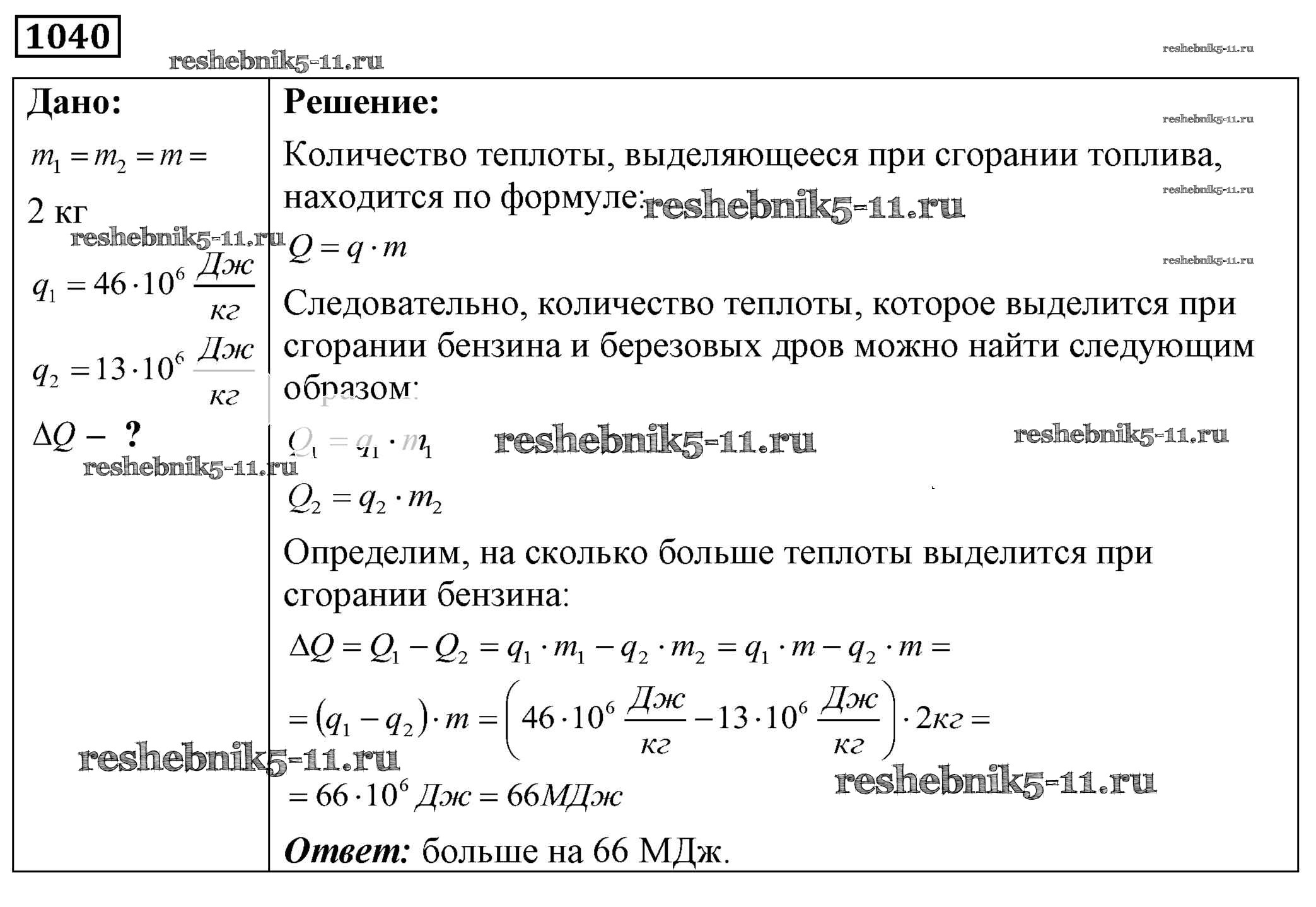 Готовая домашняя работа с ответами по Физике за 7, 8, 9 класс Лукашик, Иванова Сборник задач Просвещение 2011 ФГОС - Задания 1040