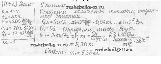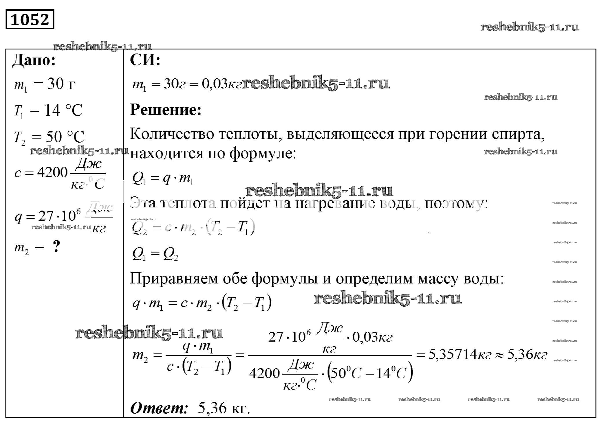 Готовая домашняя работа с ответами по Физике за 7, 8, 9 класс Лукашик, Иванова Сборник задач Просвещение 2011 ФГОС - Задания 1052
