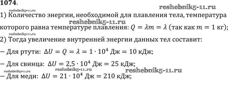Готовая домашняя работа с ответами по Физике за 7, 8, 9 класс Лукашик, Иванова Сборник задач Просвещение 2011 ФГОС - Задания 1074