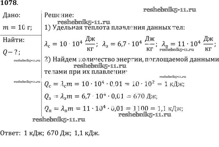 Готовая домашняя работа с ответами по Физике за 7, 8, 9 класс Лукашик, Иванова Сборник задач Просвещение 2011 ФГОС - Задания 1078