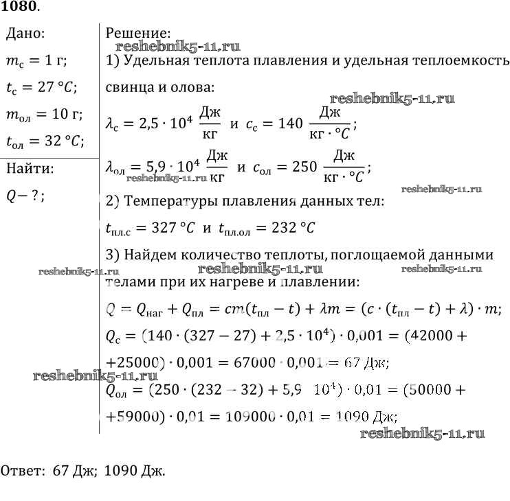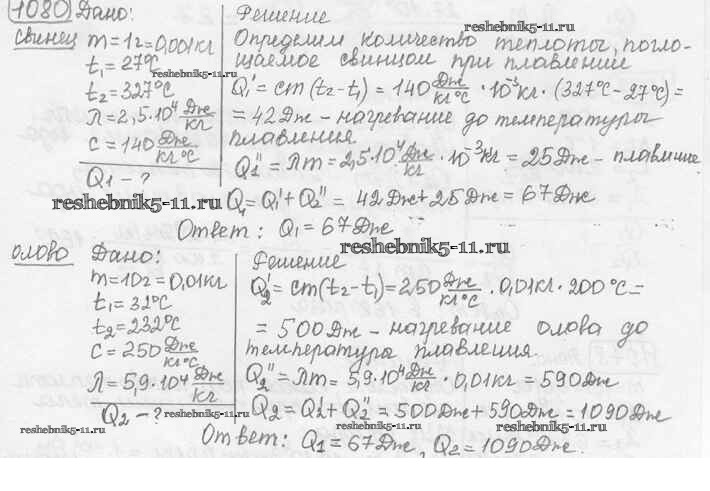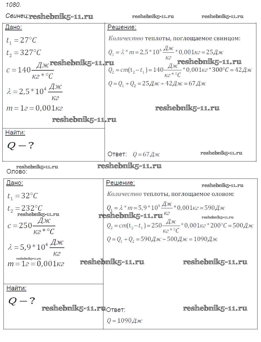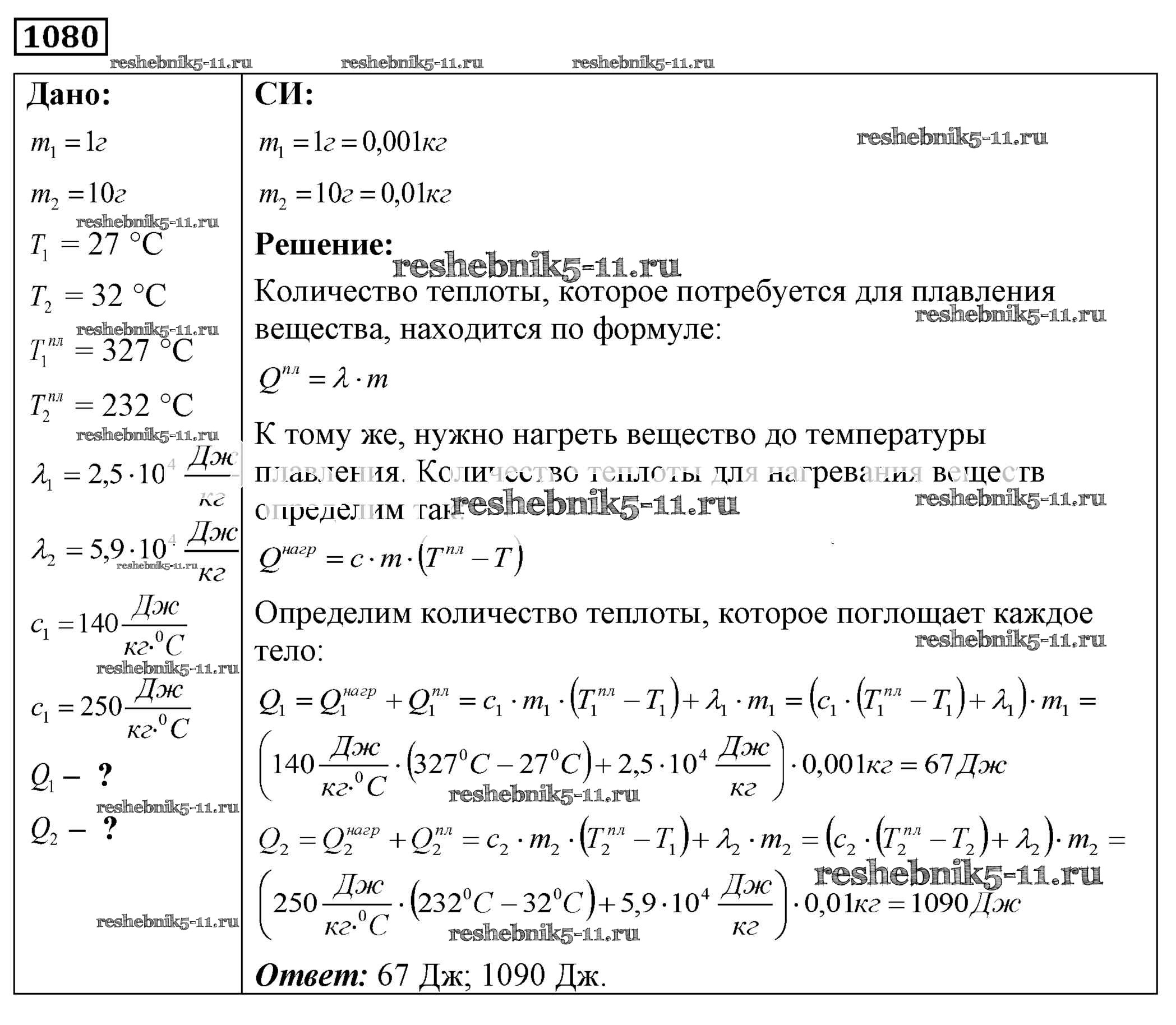 Готовая домашняя работа с ответами по Физике за 7, 8, 9 класс Лукашик, Иванова Сборник задач Просвещение 2011 ФГОС - Задания 1080
