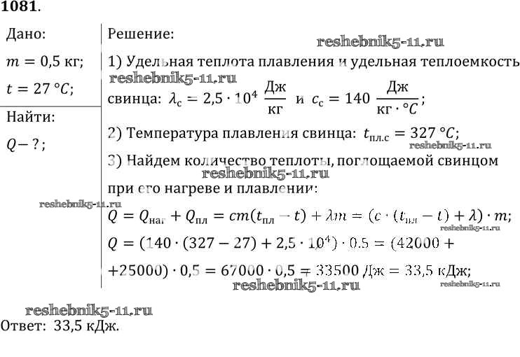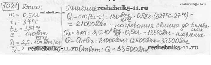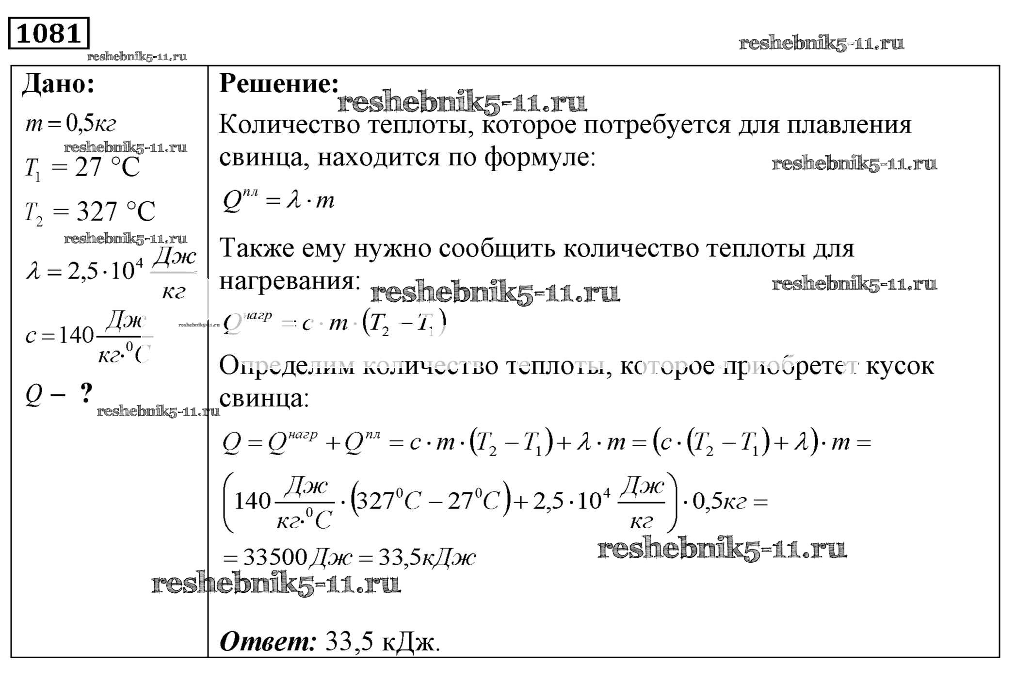 Готовая домашняя работа с ответами по Физике за 7, 8, 9 класс Лукашик, Иванова Сборник задач Просвещение 2011 ФГОС - Задания 1081