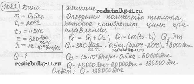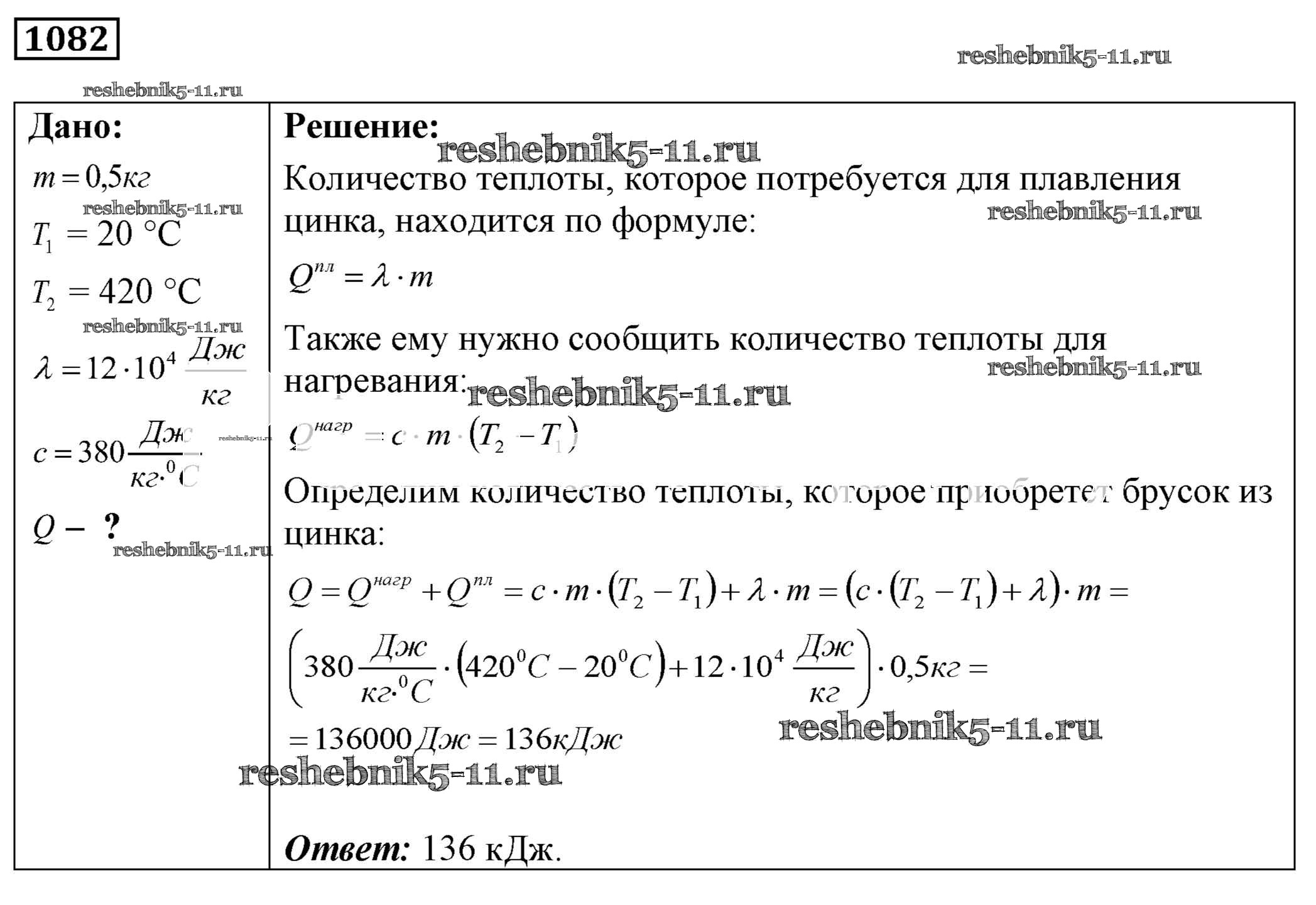 Готовая домашняя работа с ответами по Физике за 7, 8, 9 класс Лукашик, Иванова Сборник задач Просвещение 2011 ФГОС - Задания 1082