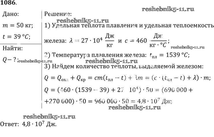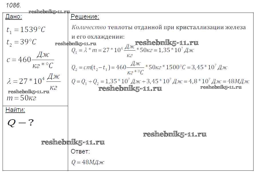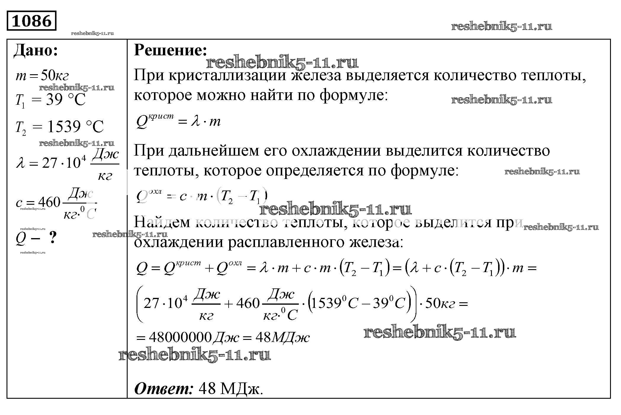 Готовая домашняя работа с ответами по Физике за 7, 8, 9 класс Лукашик, Иванова Сборник задач Просвещение 2011 ФГОС - Задания 1086