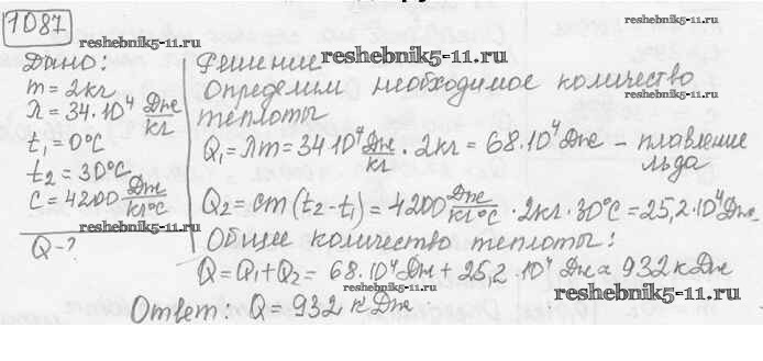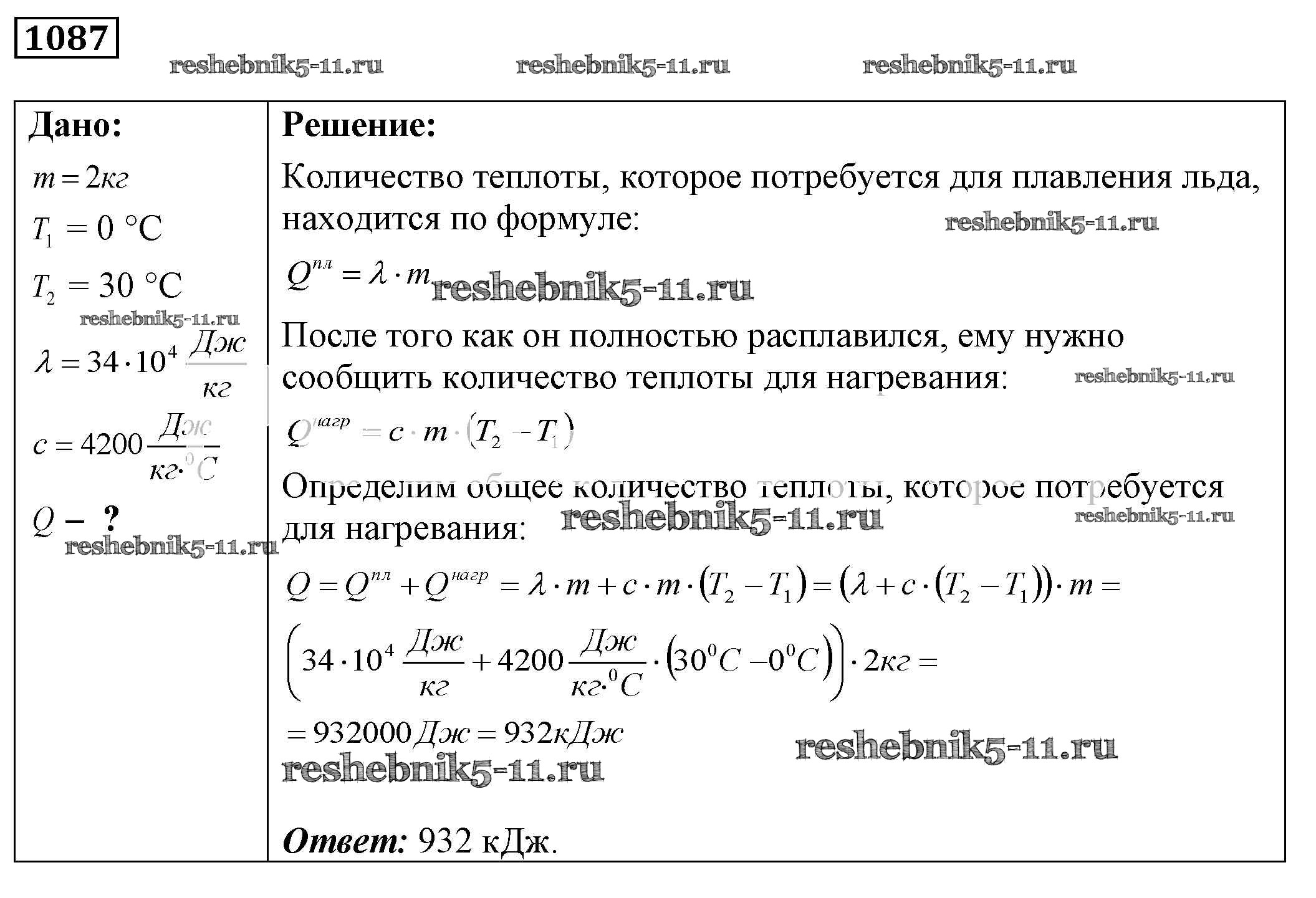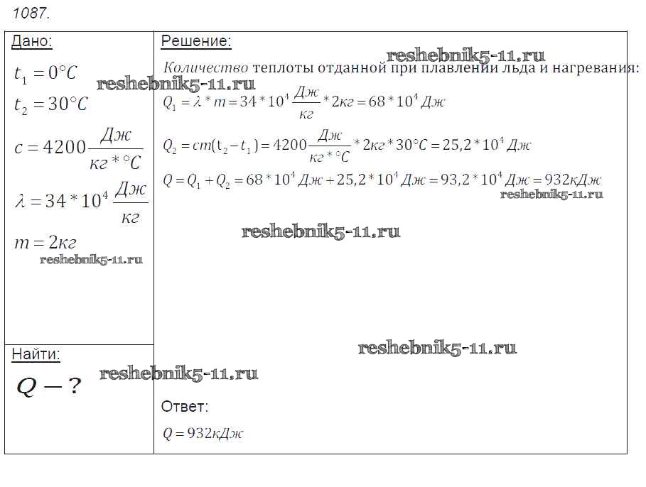 Готовая домашняя работа с ответами по Физике за 7, 8, 9 класс Лукашик, Иванова Сборник задач Просвещение 2011 ФГОС - Задания 1087