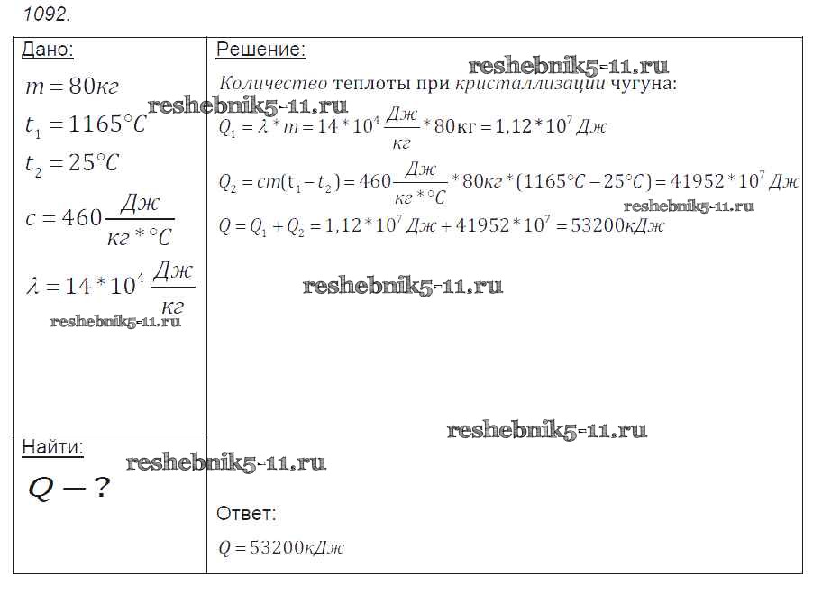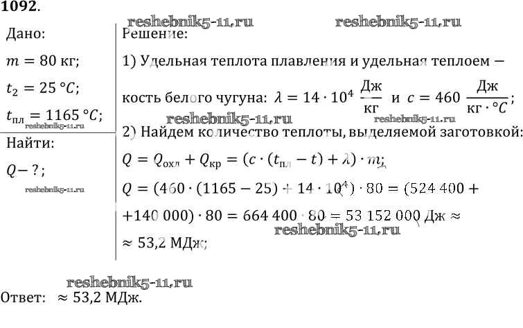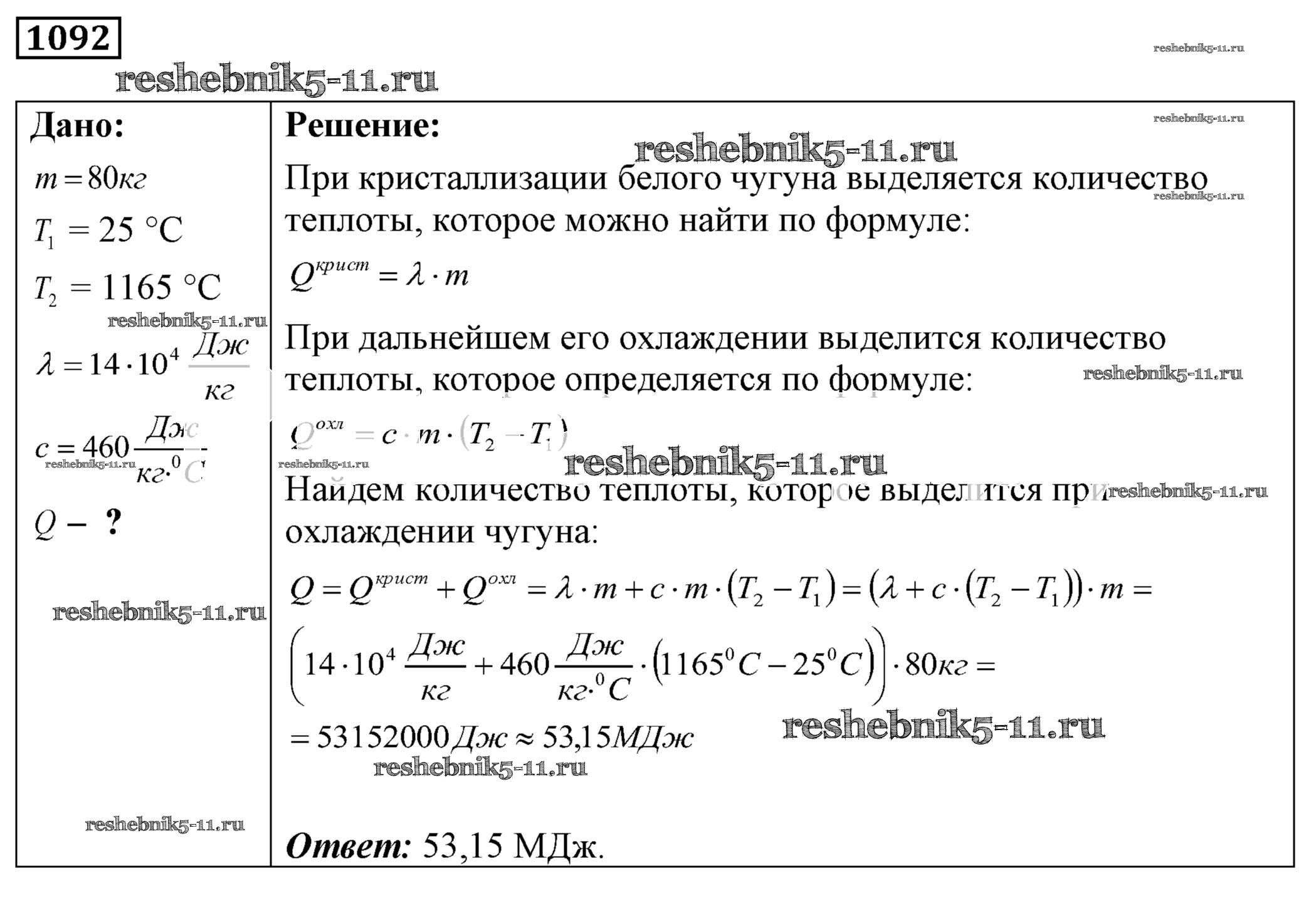 Готовая домашняя работа с ответами по Физике за 7, 8, 9 класс Лукашик, Иванова Сборник задач Просвещение 2011 ФГОС - Задания 1092