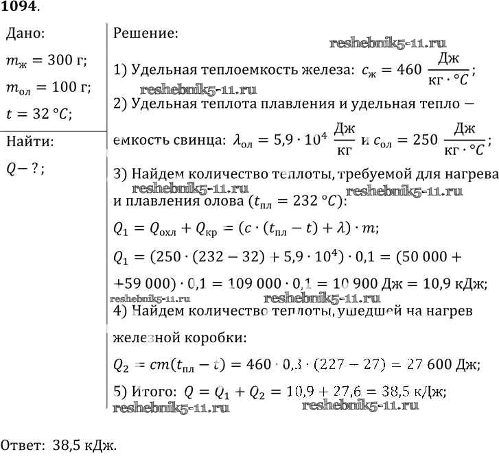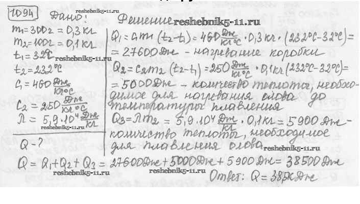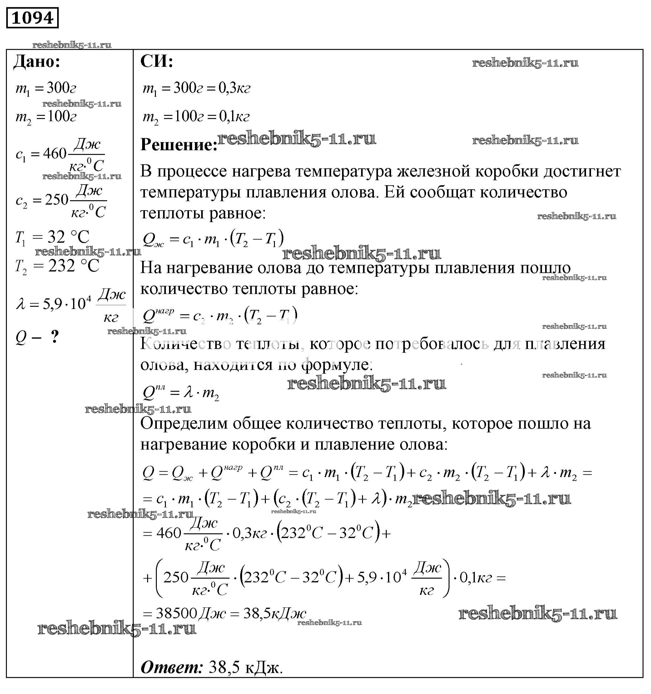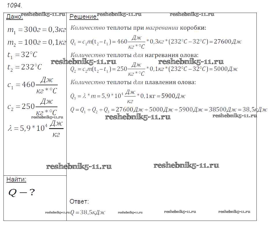 Готовая домашняя работа с ответами по Физике за 7, 8, 9 класс Лукашик, Иванова Сборник задач Просвещение 2011 ФГОС - Задания 1094