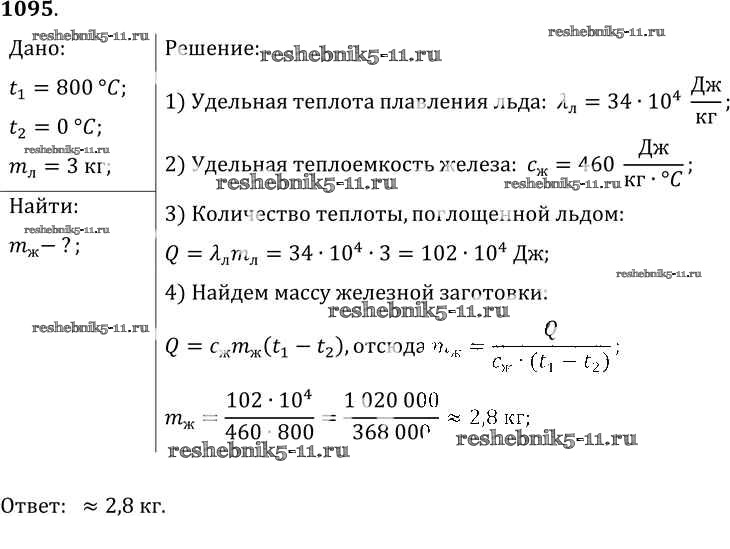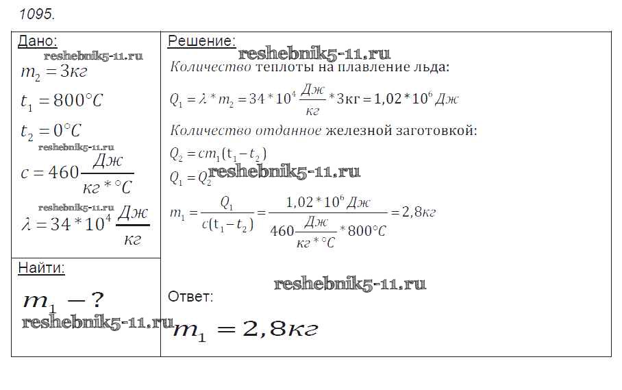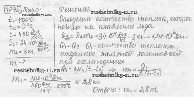 Готовая домашняя работа с ответами по Физике за 7, 8, 9 класс Лукашик, Иванова Сборник задач Просвещение 2011 ФГОС - Задания 1095
