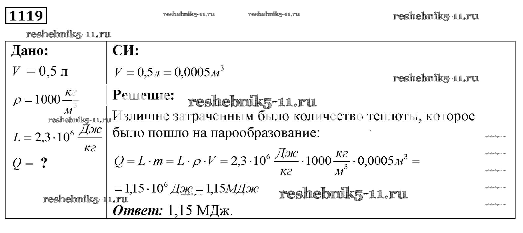 Готовая домашняя работа с ответами по Физике за 7, 8, 9 класс Лукашик, Иванова Сборник задач Просвещение 2011 ФГОС - Задания 1119