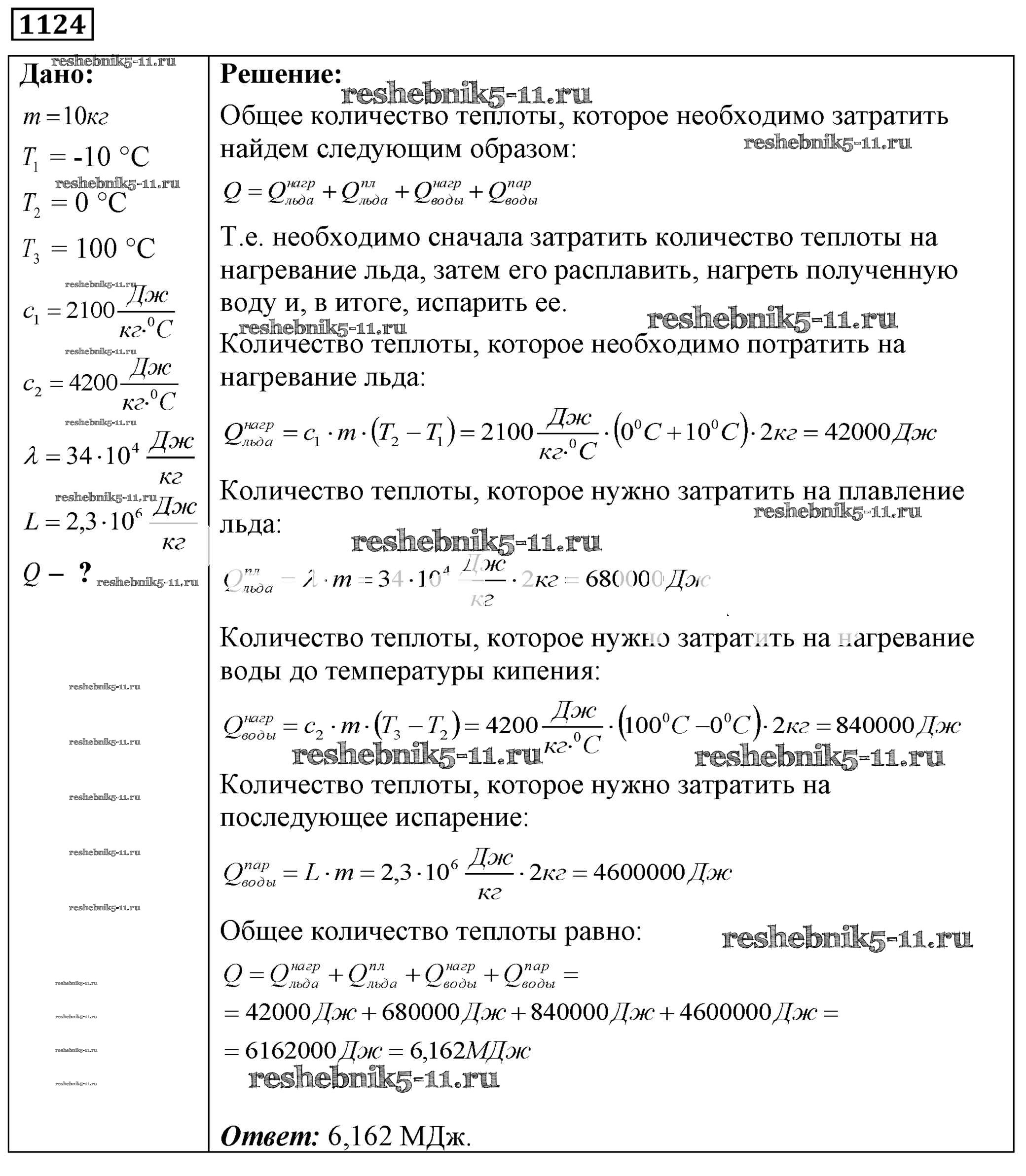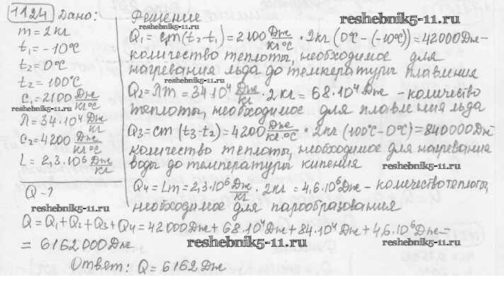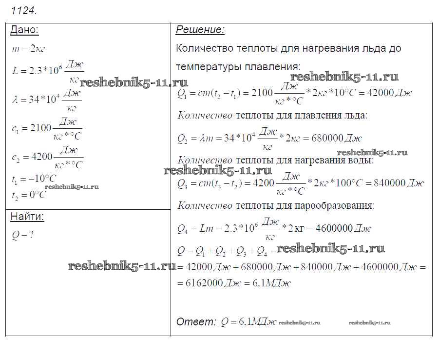 Готовая домашняя работа с ответами по Физике за 7, 8, 9 класс Лукашик, Иванова Сборник задач Просвещение 2011 ФГОС - Задания 1124