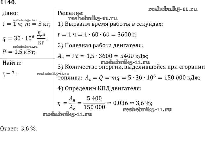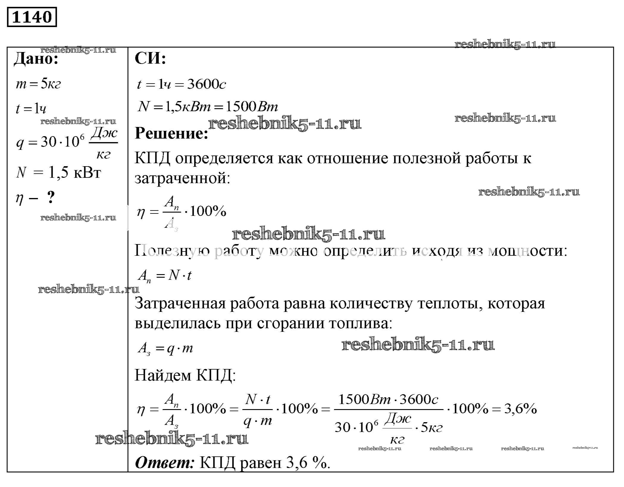 Готовая домашняя работа с ответами по Физике за 7, 8, 9 класс Лукашик, Иванова Сборник задач Просвещение 2011 ФГОС - Задания 1140