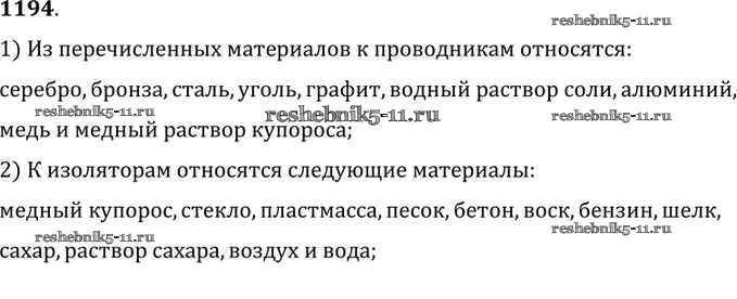 Готовая домашняя работа с ответами по Физике за 7, 8, 9 класс Лукашик, Иванова Сборник задач Просвещение 2011 ФГОС - Задания 1194
