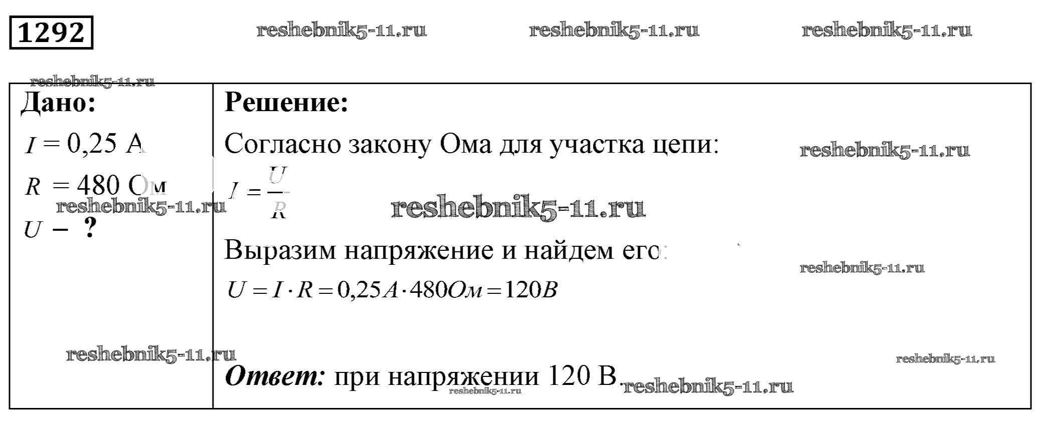 Готовая домашняя работа с ответами по Физике за 7, 8, 9 класс Лукашик, Иванова Сборник задач Просвещение 2011 ФГОС - Задания 1292