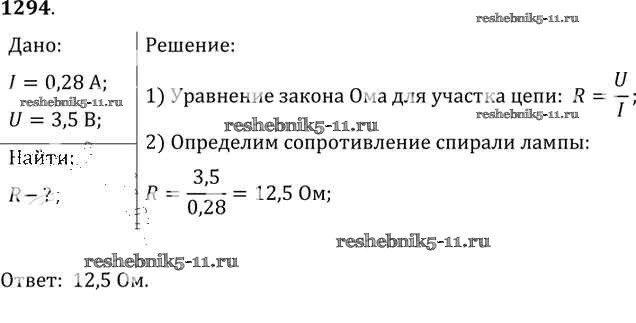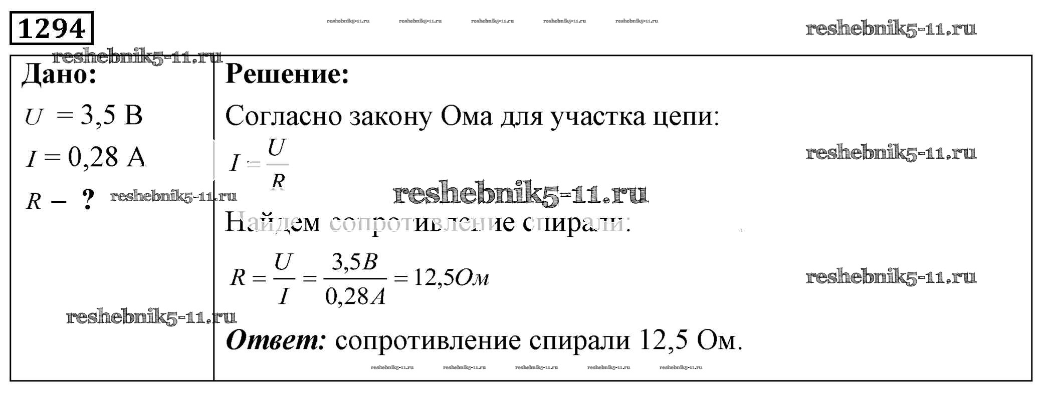 Готовая домашняя работа с ответами по Физике за 7, 8, 9 класс Лукашик, Иванова Сборник задач Просвещение 2011 ФГОС - Задания 1294