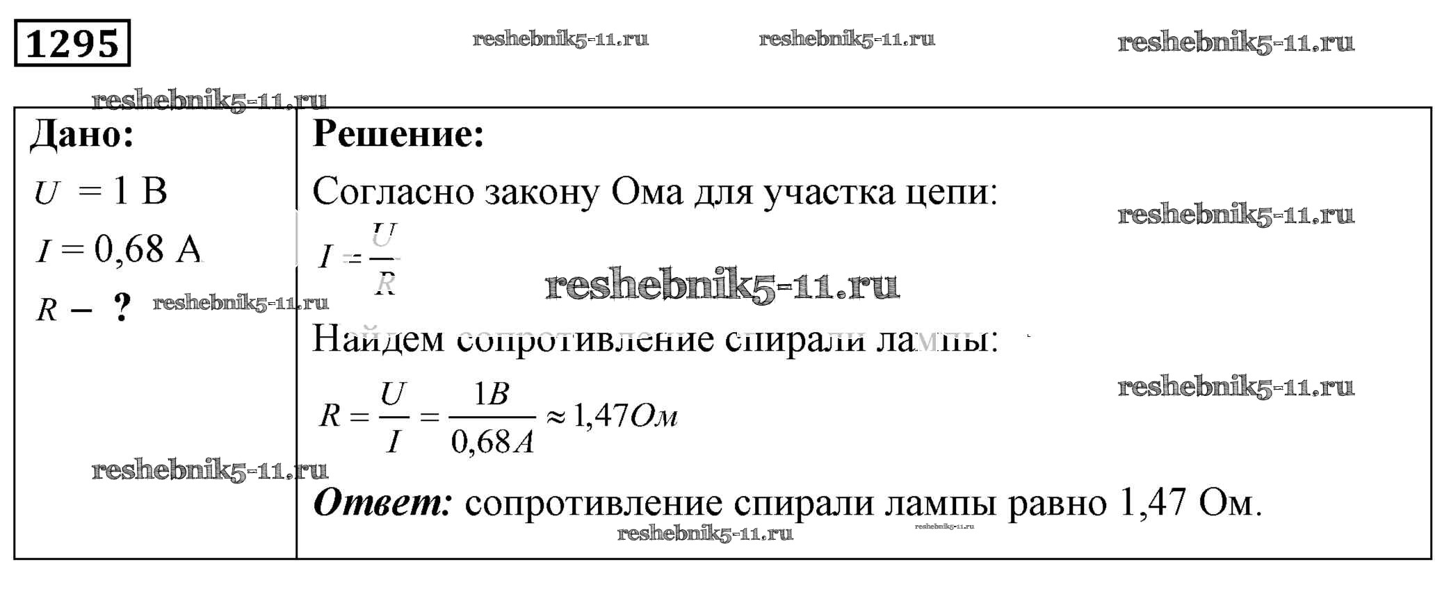 Готовая домашняя работа с ответами по Физике за 7, 8, 9 класс Лукашик, Иванова Сборник задач Просвещение 2011 ФГОС - Задания 1295