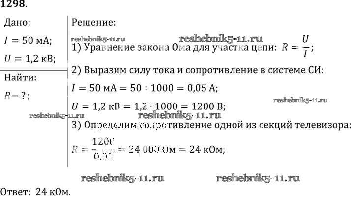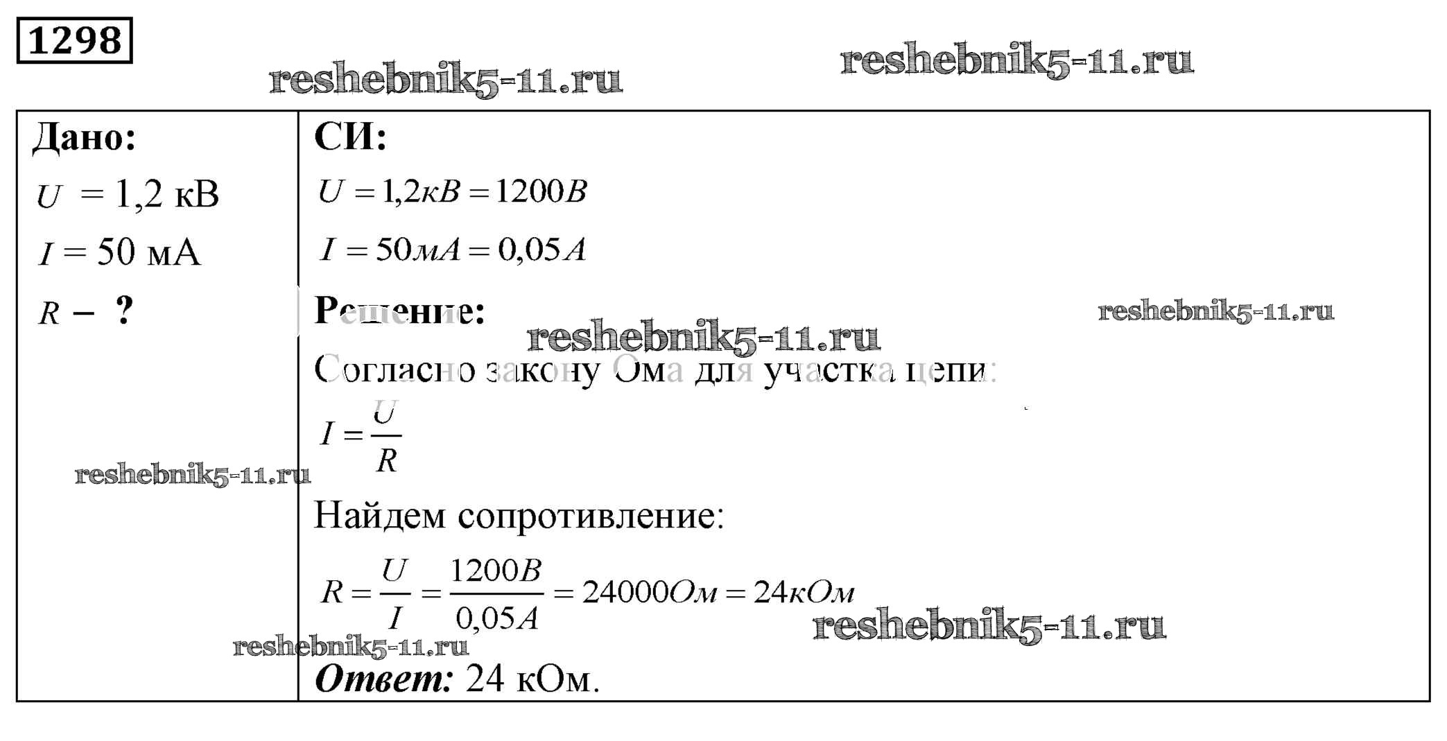 Готовая домашняя работа с ответами по Физике за 7, 8, 9 класс Лукашик, Иванова Сборник задач Просвещение 2011 ФГОС - Задания 1298