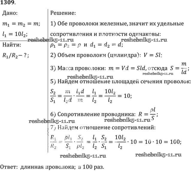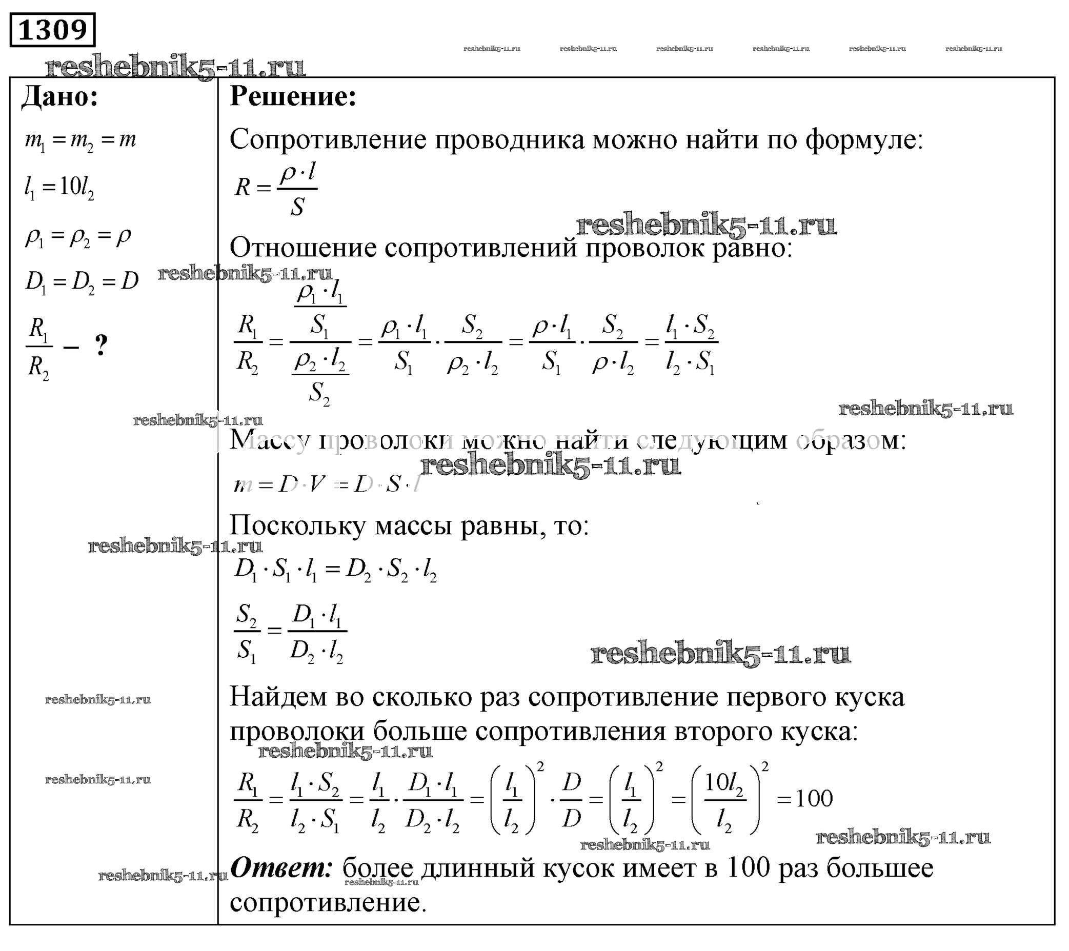 Готовая домашняя работа с ответами по Физике за 7, 8, 9 класс Лукашик, Иванова Сборник задач Просвещение 2011 ФГОС - Задания 1309