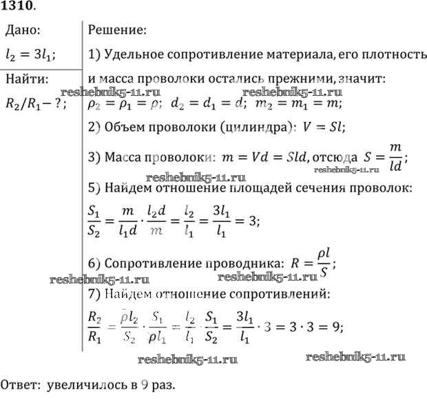 Готовая домашняя работа с ответами по Физике за 7, 8, 9 класс Лукашик, Иванова Сборник задач Просвещение 2011 ФГОС - Задания 1310