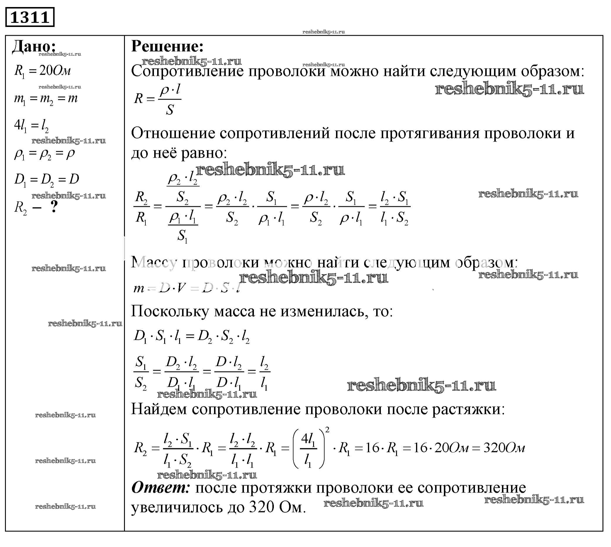 Готовая домашняя работа с ответами по Физике за 7, 8, 9 класс Лукашик, Иванова Сборник задач Просвещение 2011 ФГОС - Задания 1311