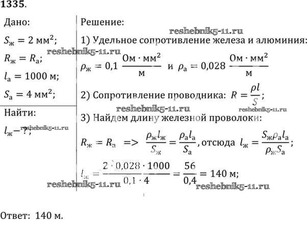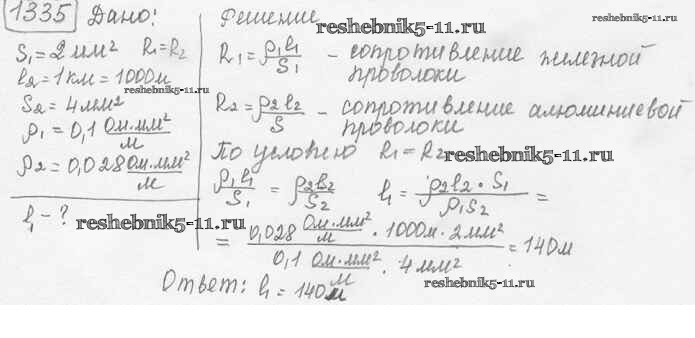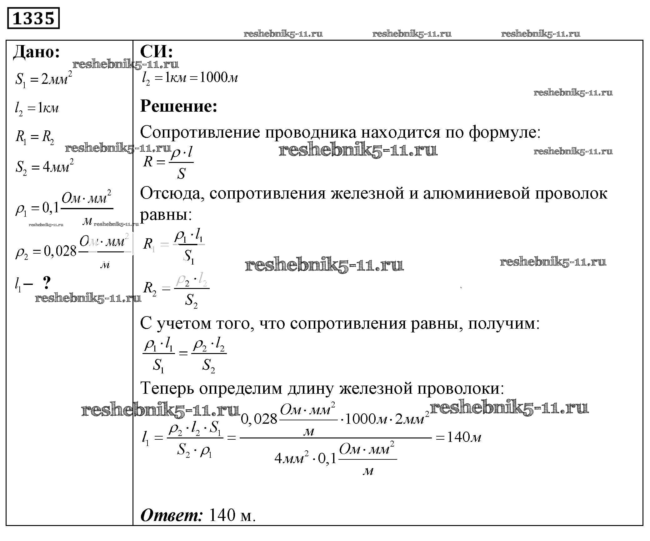 Готовая домашняя работа с ответами по Физике за 7, 8, 9 класс Лукашик, Иванова Сборник задач Просвещение 2011 ФГОС - Задания 1335