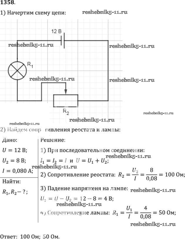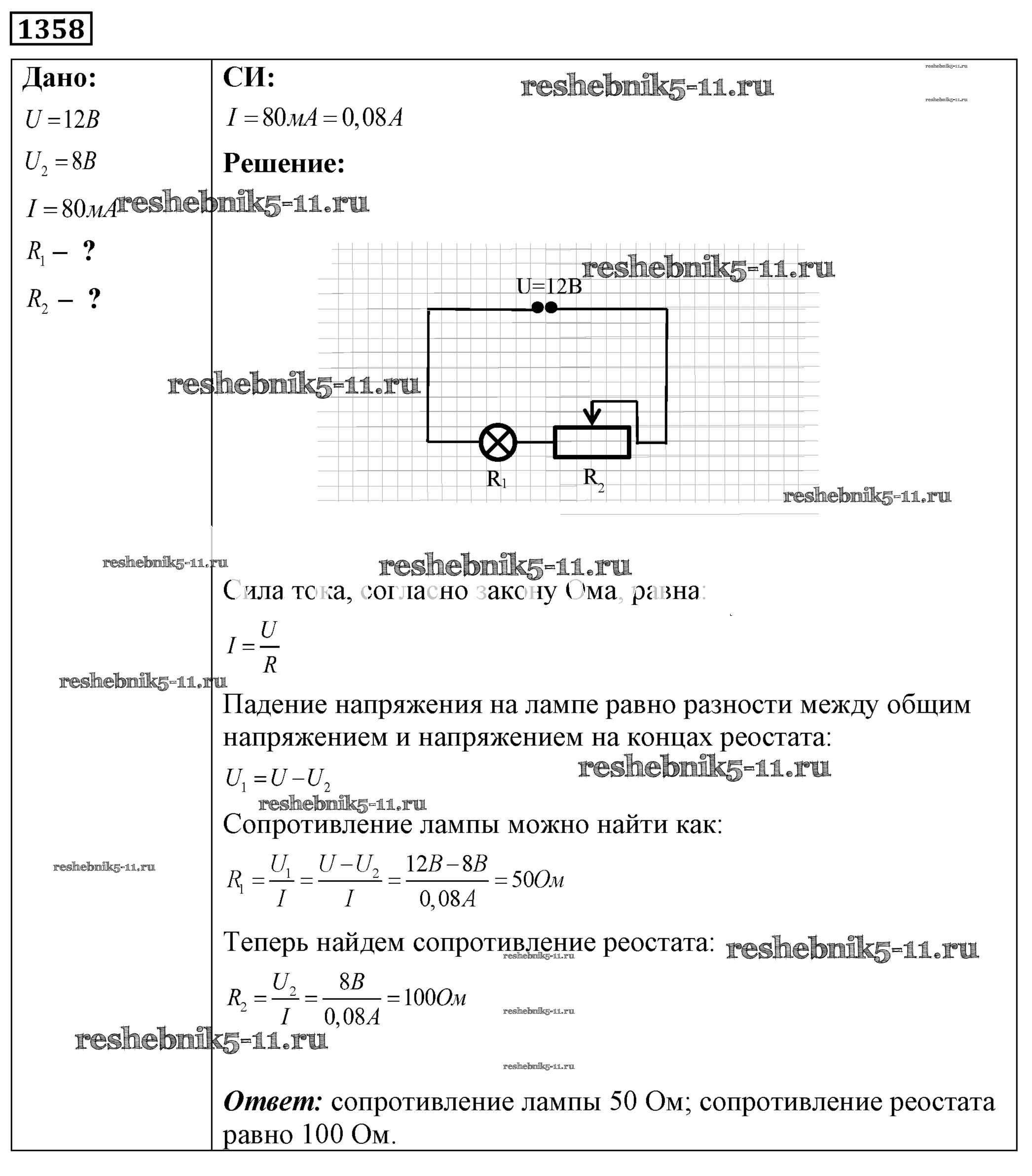 Готовая домашняя работа с ответами по Физике за 7, 8, 9 класс Лукашик, Иванова Сборник задач Просвещение 2011 ФГОС - Задания 1358