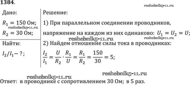 Готовая домашняя работа с ответами по Физике за 7, 8, 9 класс Лукашик, Иванова Сборник задач Просвещение 2011 ФГОС - Задания 1384