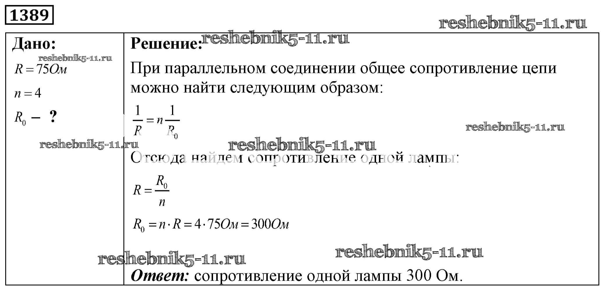 Готовая домашняя работа с ответами по Физике за 7, 8, 9 класс Лукашик, Иванова Сборник задач Просвещение 2011 ФГОС - Задания 1389