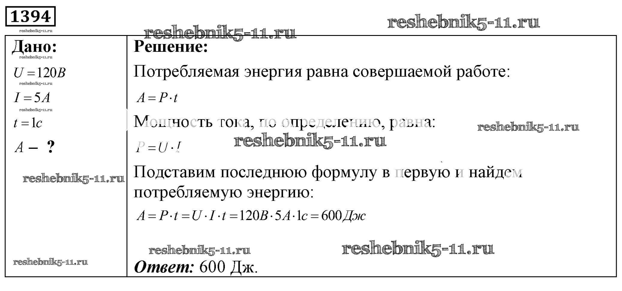 Готовая домашняя работа с ответами по Физике за 7, 8, 9 класс Лукашик, Иванова Сборник задач Просвещение 2011 ФГОС - Задания 1394