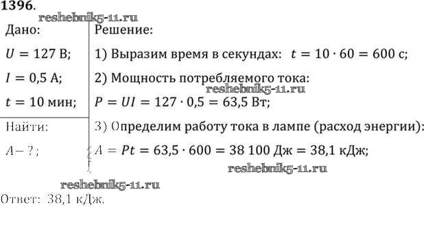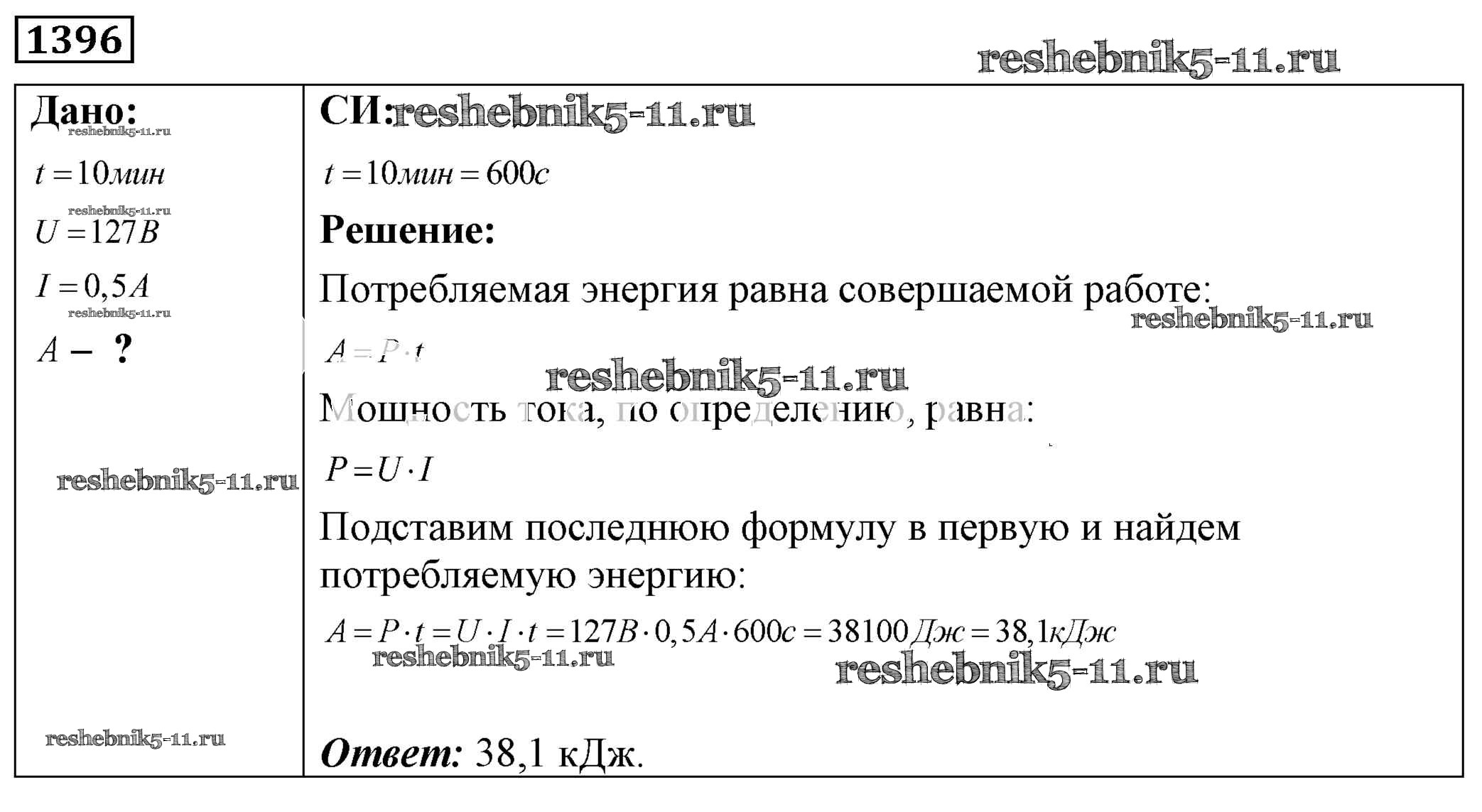 Готовая домашняя работа с ответами по Физике за 7, 8, 9 класс Лукашик, Иванова Сборник задач Просвещение 2011 ФГОС - Задания 1396