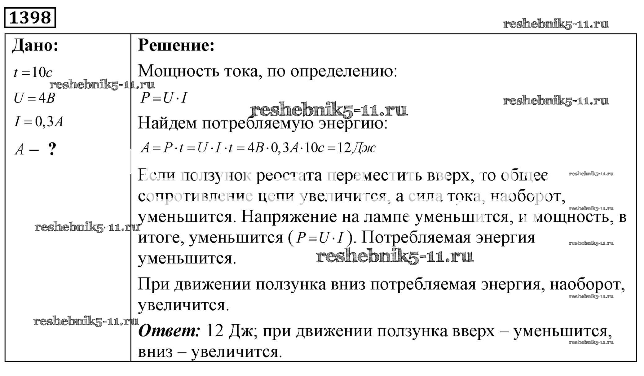 Готовая домашняя работа с ответами по Физике за 7, 8, 9 класс Лукашик, Иванова Сборник задач Просвещение 2011 ФГОС - Задания 1398