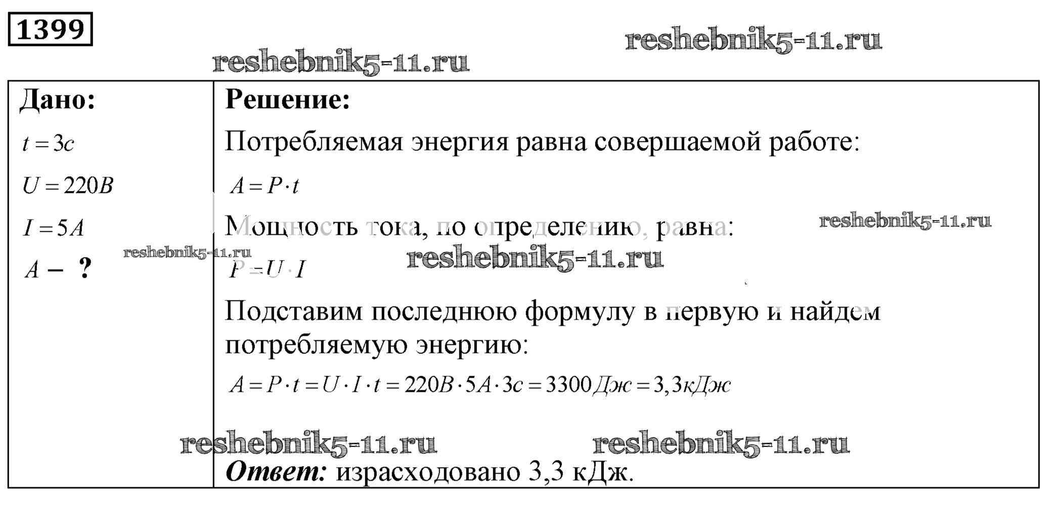 Готовая домашняя работа с ответами по Физике за 7, 8, 9 класс Лукашик, Иванова Сборник задач Просвещение 2011 ФГОС - Задания 1399