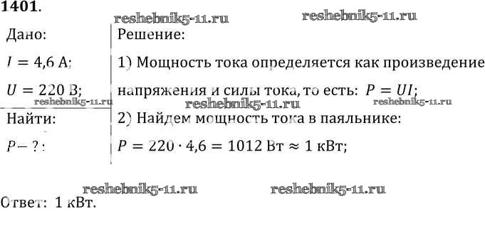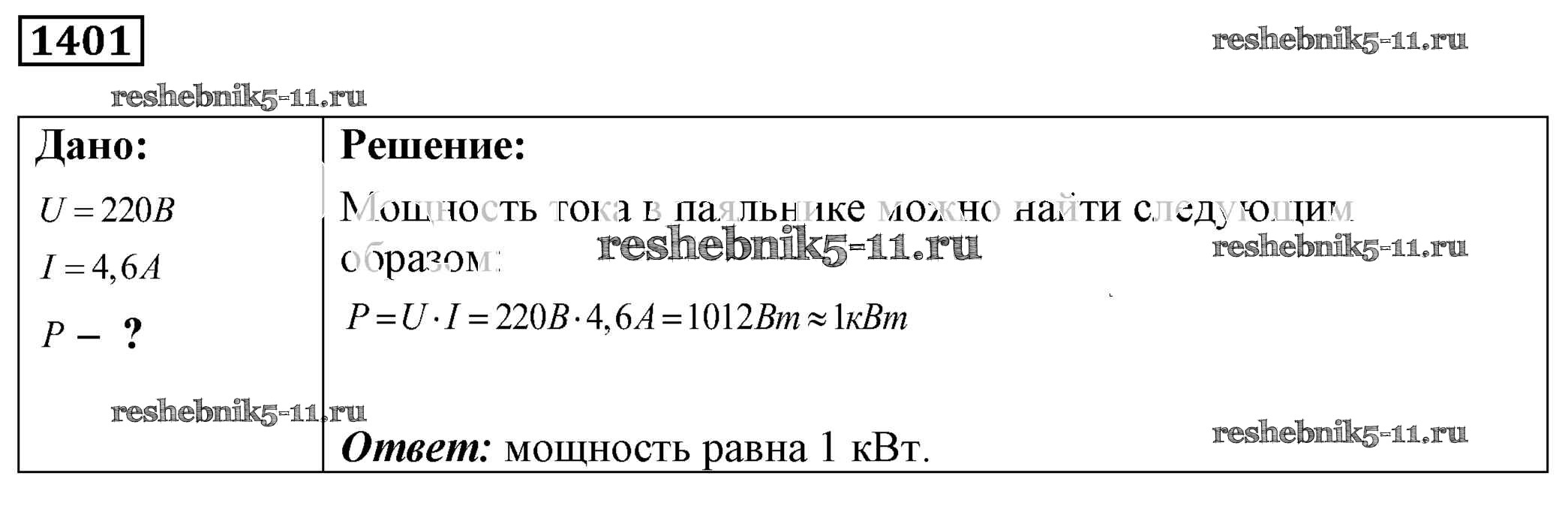 Готовая домашняя работа с ответами по Физике за 7, 8, 9 класс Лукашик, Иванова Сборник задач Просвещение 2011 ФГОС - Задания 1401