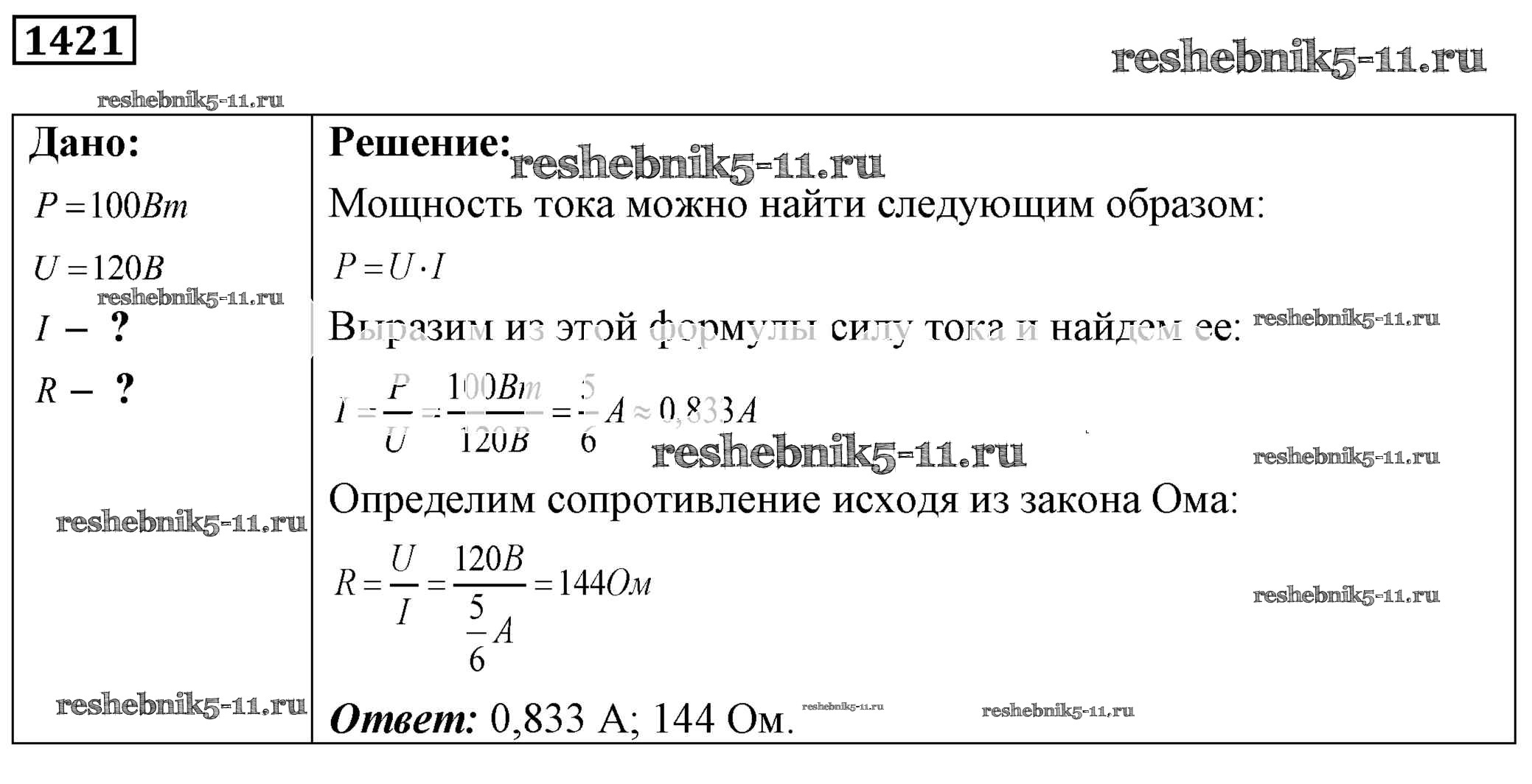 Готовая домашняя работа с ответами по Физике за 7, 8, 9 класс Лукашик, Иванова Сборник задач Просвещение 2011 ФГОС - Задания 1421