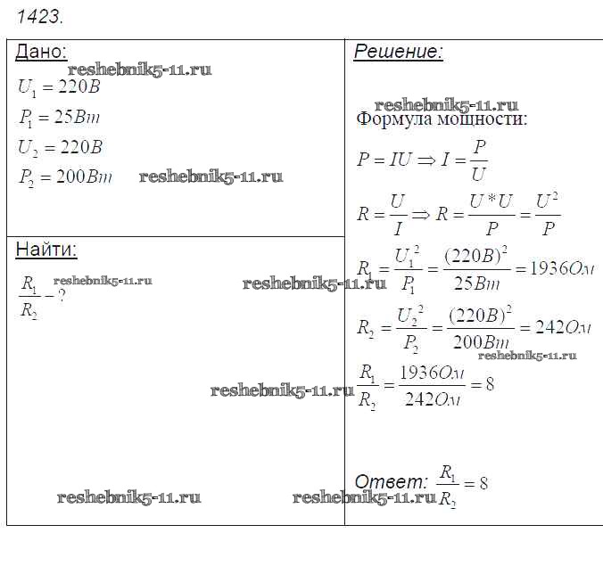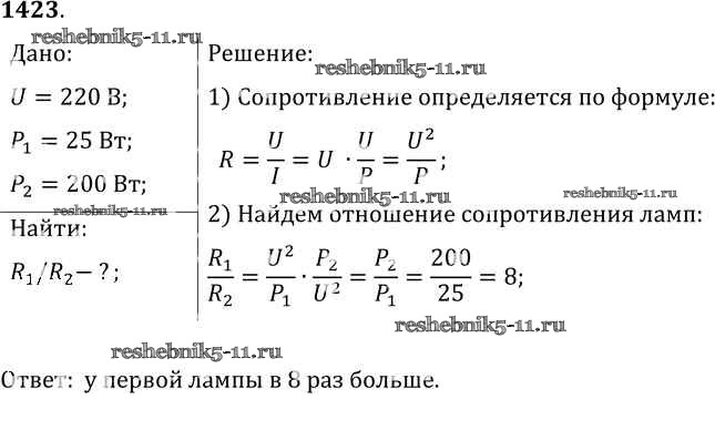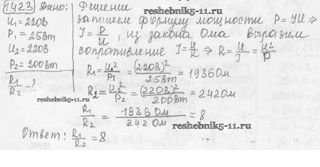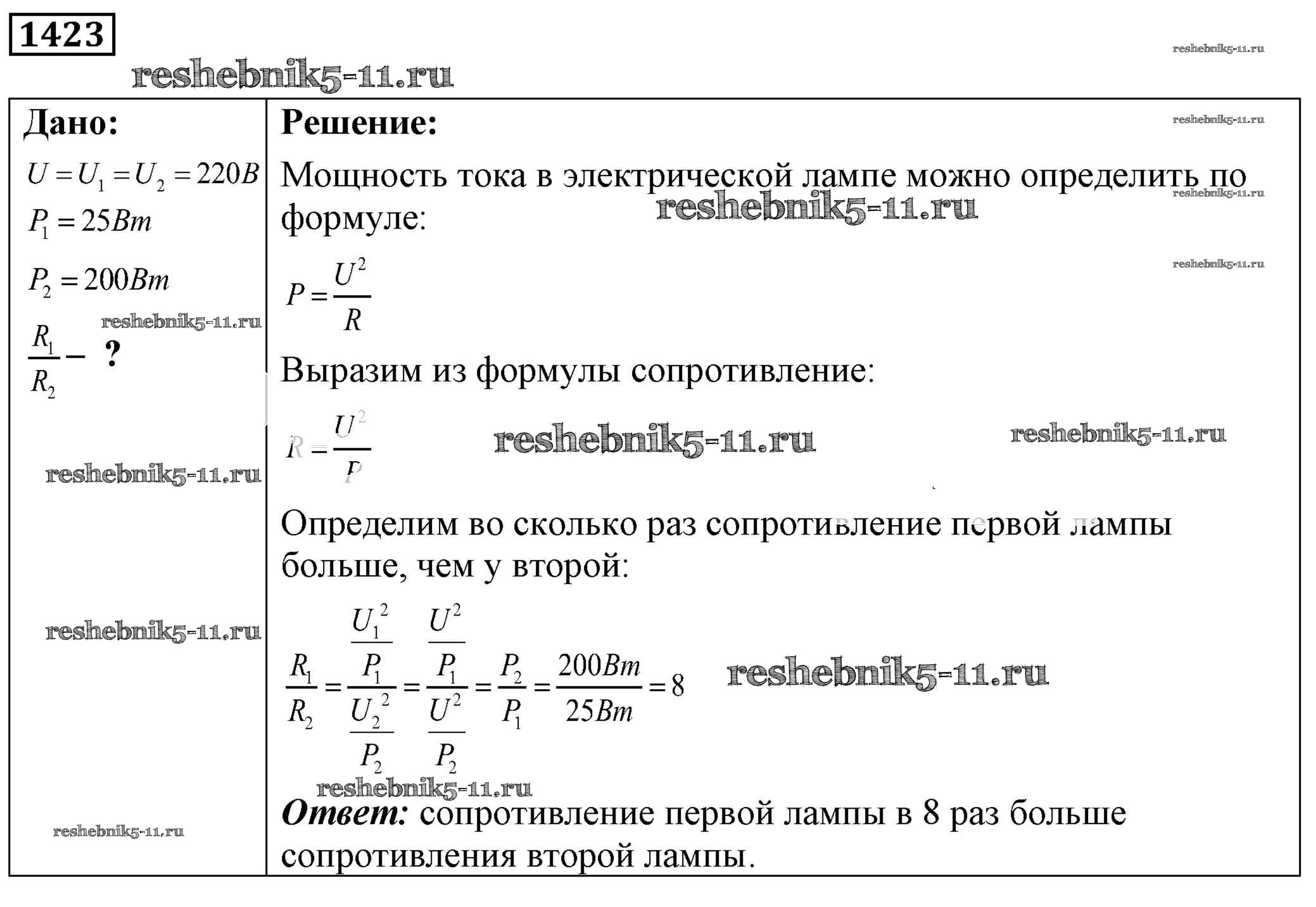 Готовая домашняя работа с ответами по Физике за 7, 8, 9 класс Лукашик, Иванова Сборник задач Просвещение 2011 ФГОС - Задания 1423