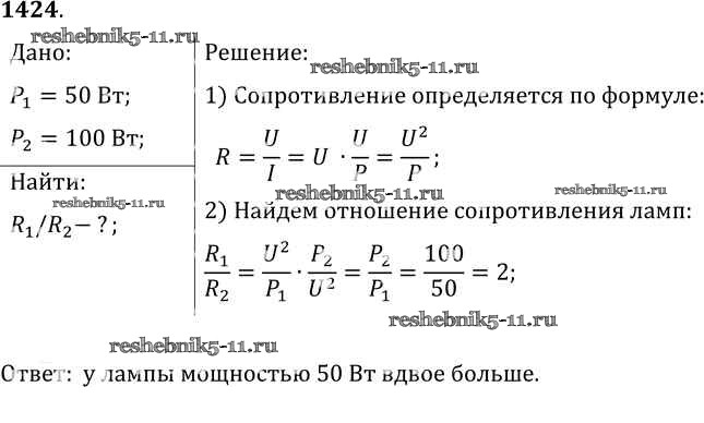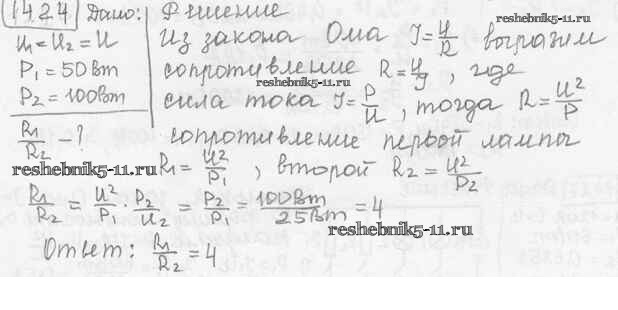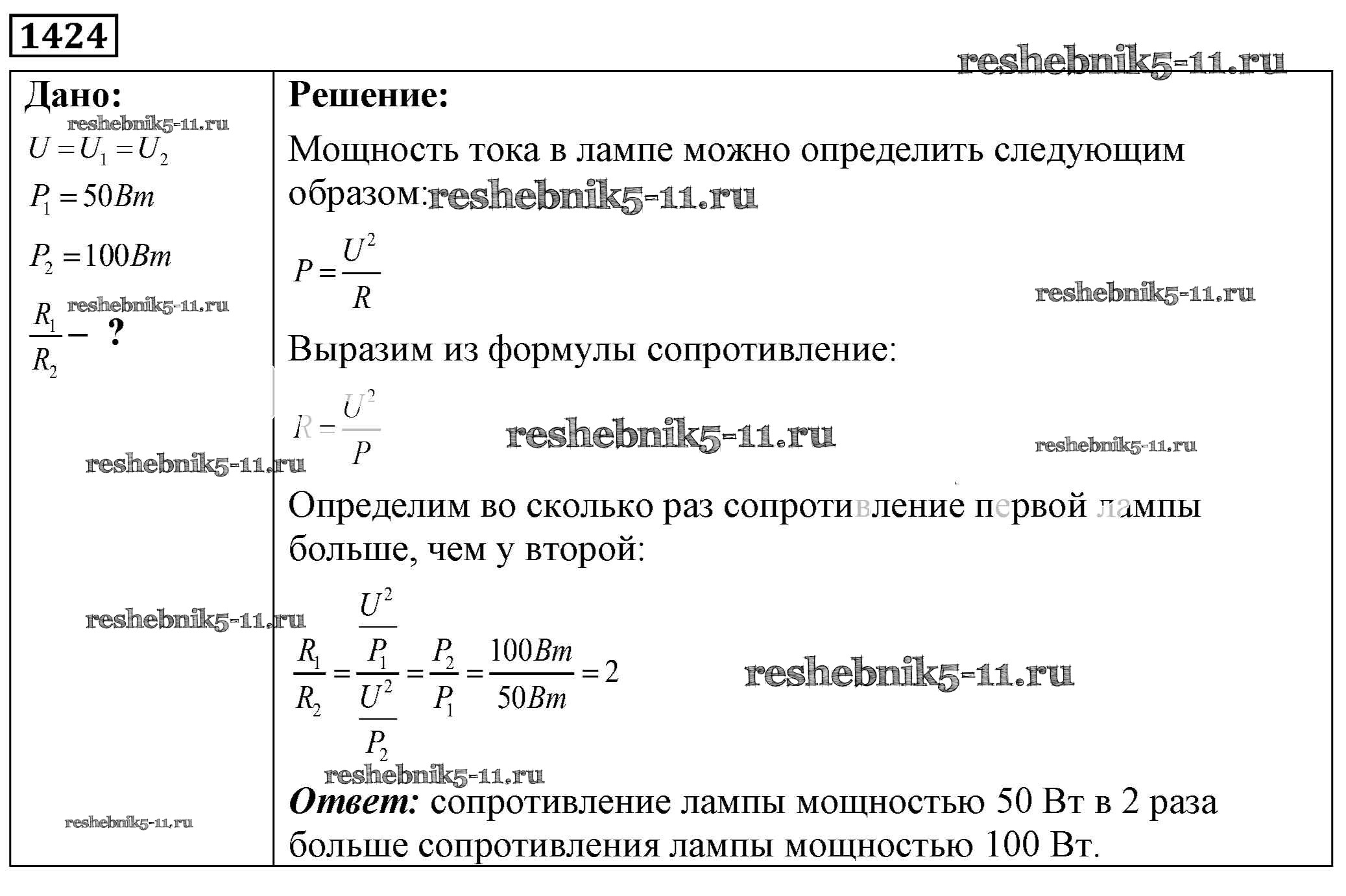 Готовая домашняя работа с ответами по Физике за 7, 8, 9 класс Лукашик, Иванова Сборник задач Просвещение 2011 ФГОС - Задания 1424