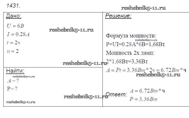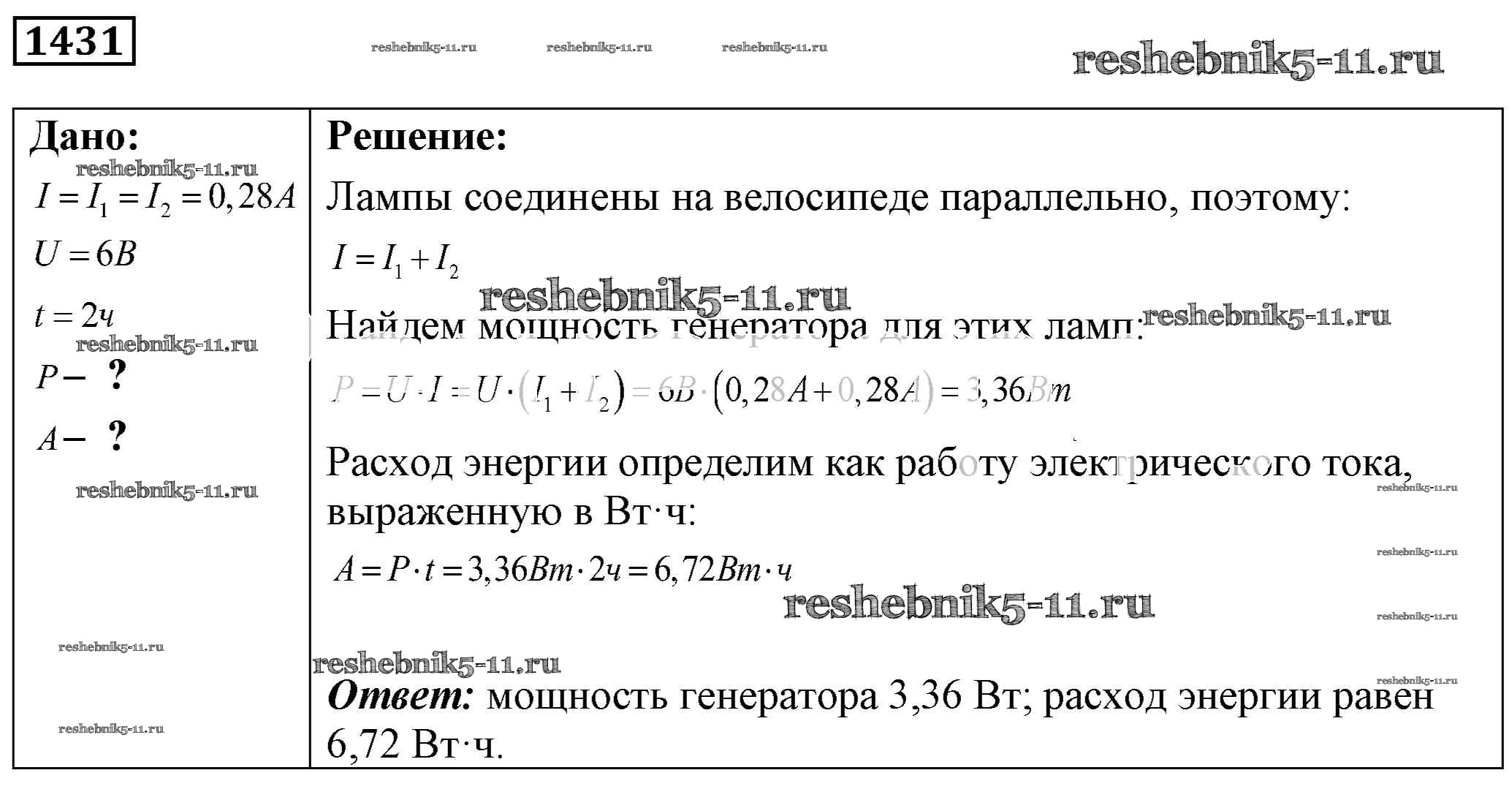 Готовая домашняя работа с ответами по Физике за 7, 8, 9 класс Лукашик, Иванова Сборник задач Просвещение 2011 ФГОС - Задания 1431