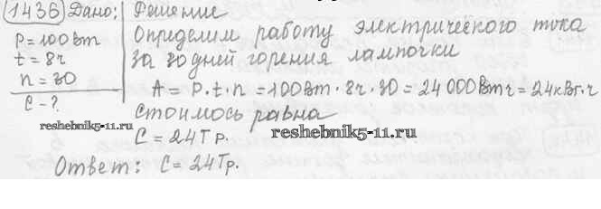 Готовая домашняя работа с ответами по Физике за 7, 8, 9 класс Лукашик, Иванова Сборник задач Просвещение 2011 ФГОС - Задания 1436